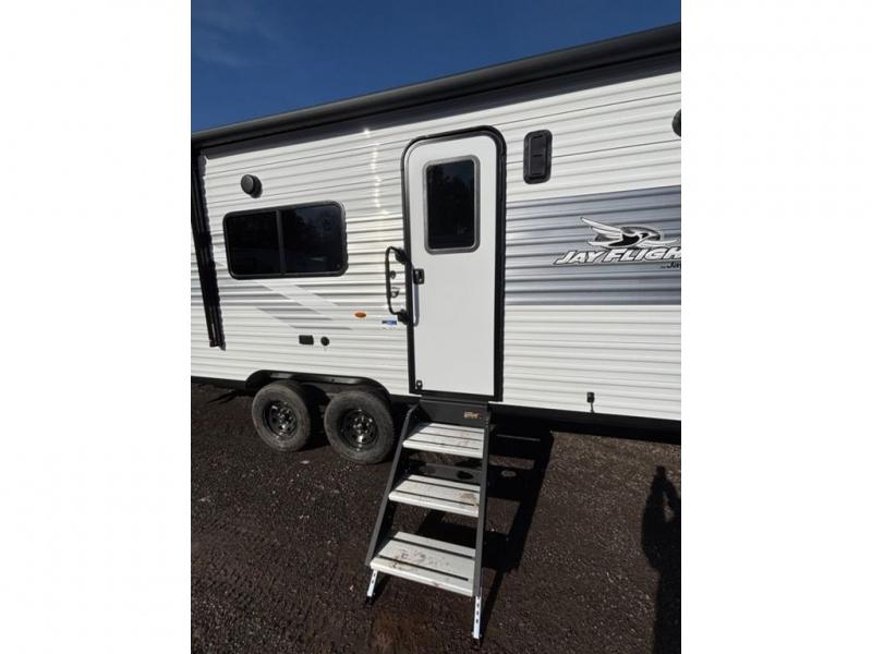 With any Jay Flight travel trailer or toy hauler by Jayco, you can enjoy camping trips to the max! There are a wide variety of floorplans to choose from, so whether you're looking for a couple's unit or bunkhouse model, there is sure to be a Jay Flight for you. Each model is constructed with a Magnum Truss roof system, an enclosed and heated underbelly, and I-Class cambered structural steel I-beams for added support. The interior will have you feeling right at home with residential-style kitchen countertops and hidden cabinet door hinges, vinyl flooring throughout, including slide floors, plus a 6' 9" ceiling height for added head space. The standard features continue on with the mandatory Customer Value Package that includes Keyed-Alike entry and baggage doors, an Overland 1 Solar Package, a Rock-Solid stabilizer system, backup and side view camera prep, and so much more!