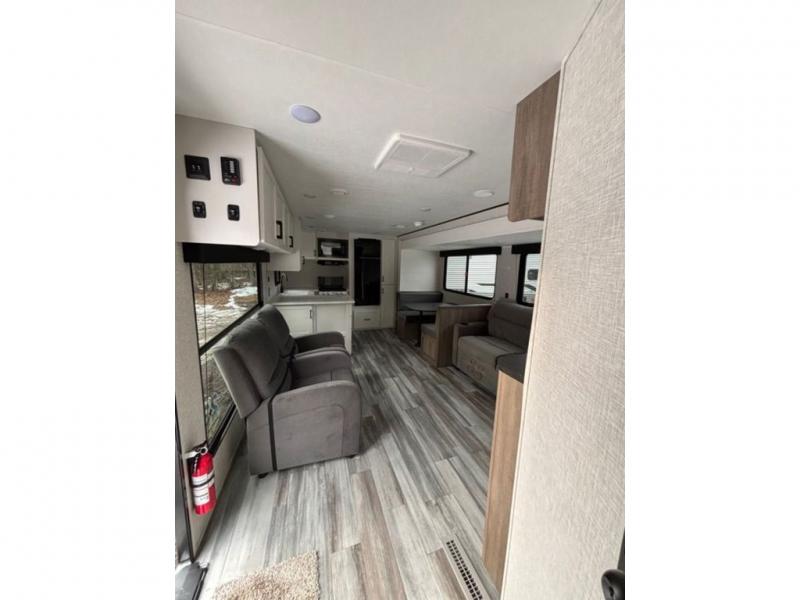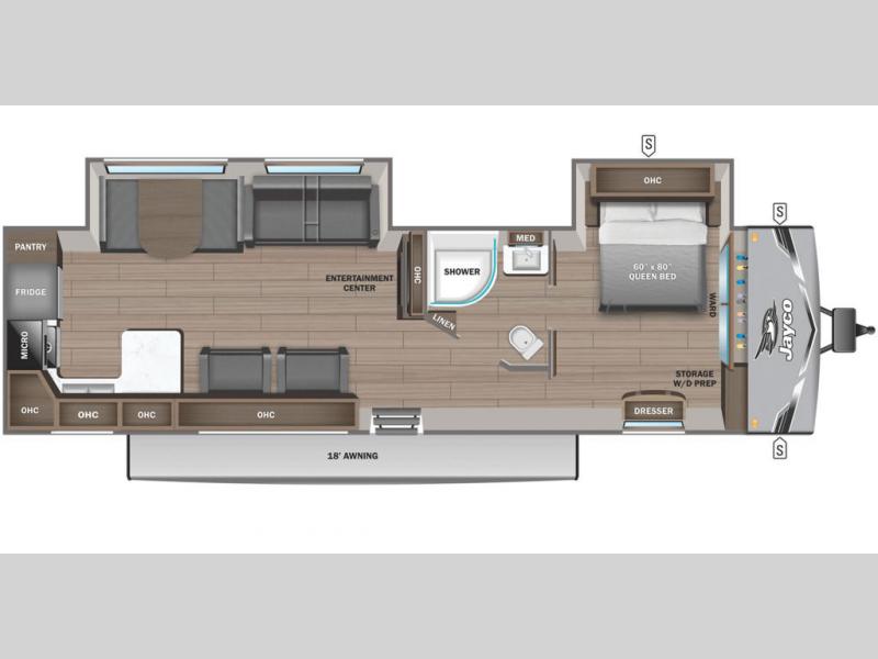 With any Jay Flight travel trailer or toy hauler by Jayco, you can enjoy camping trips to the max! There are a wide variety of floorplans to choose from, so whether you're looking for a couple's unit or bunkhouse model, there is sure to be a Jay Flight for you. Each model is constructed with a Magnum Truss roof system, an enclosed and heated underbelly, and I-Class cambered structural steel I-beams for added support. The interior will have you feeling right at home with residential-style kitchen countertops and hidden cabinet door hinges, vinyl flooring throughout, including slide floors, plus a 6' 9" ceiling height for added head space. The standard features continue on with the mandatory Customer Value Package that includes Keyed-Alike entry and baggage doors, an Overland 1 Solar Package, a Rock-Solid stabilizer system, backup and side view camera prep, and so much more!