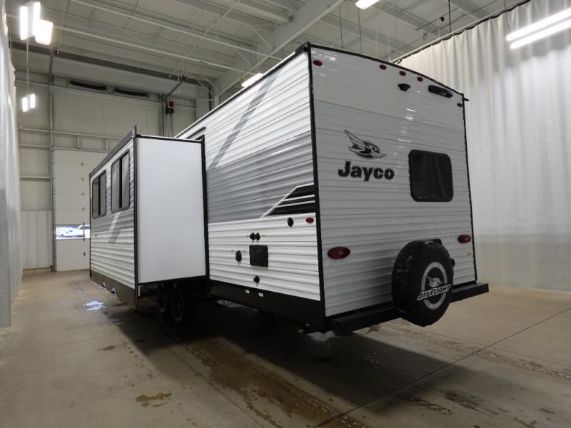 With any Jay Flight travel trailer or toy hauler by Jayco, you can enjoy camping trips to the max! There are a wide variety of floorplans to choose from, so whether you're looking for a couple's unit or bunkhouse model, there is sure to be a Jay Flight for you. Each model is constructed with a Magnum Truss roof system, an enclosed and heated underbelly, and I-Class cambered structural steel I-beams for added support. The interior will have you feeling right at home with residential-style kitchen countertops and hidden cabinet door hinges, vinyl flooring throughout, including slide floors, plus a 6' 9" ceiling height for added head space. The standard features continue on with the mandatory Customer Value Package that includes Keyed-Alike entry and baggage doors, an Overland 1 Solar Package, a Rock-Solid stabilizer system, backup and side view camera prep, and so much more!