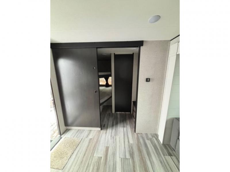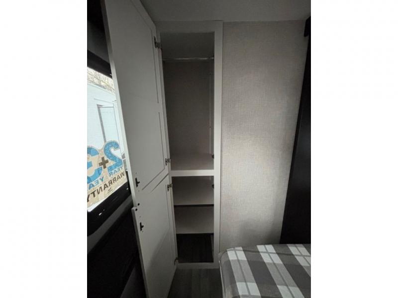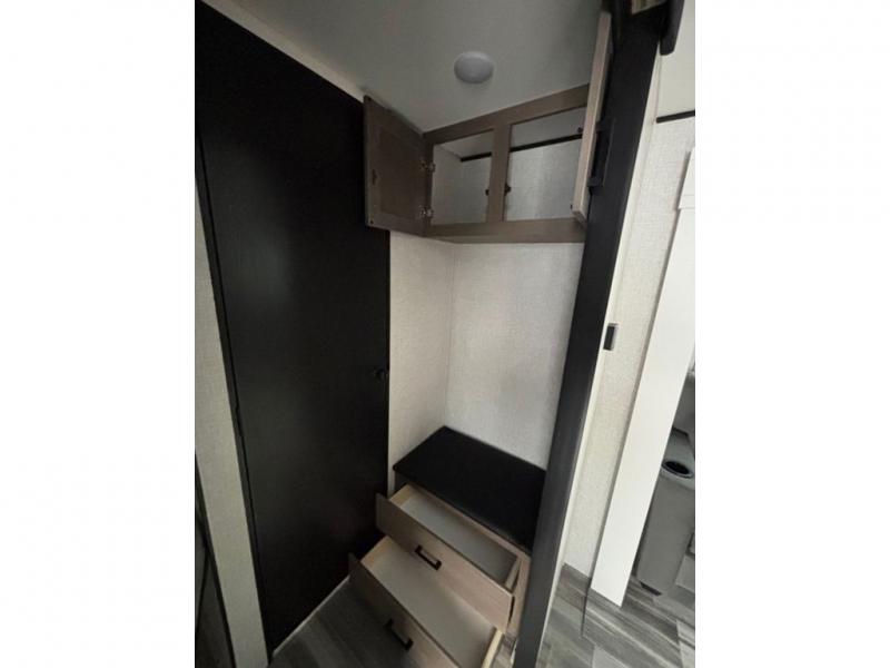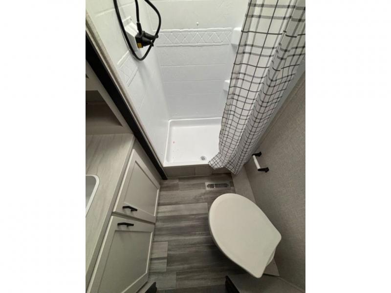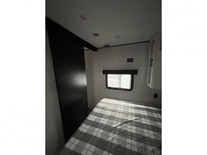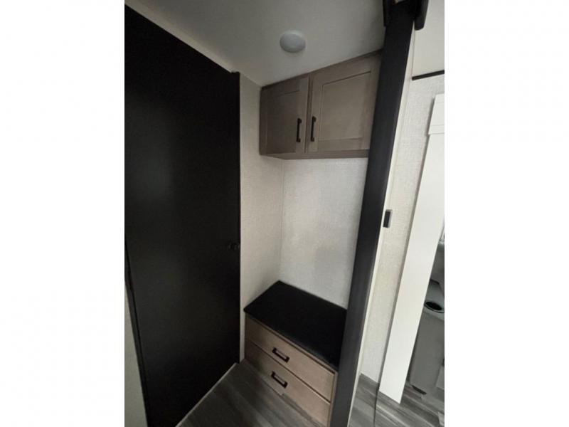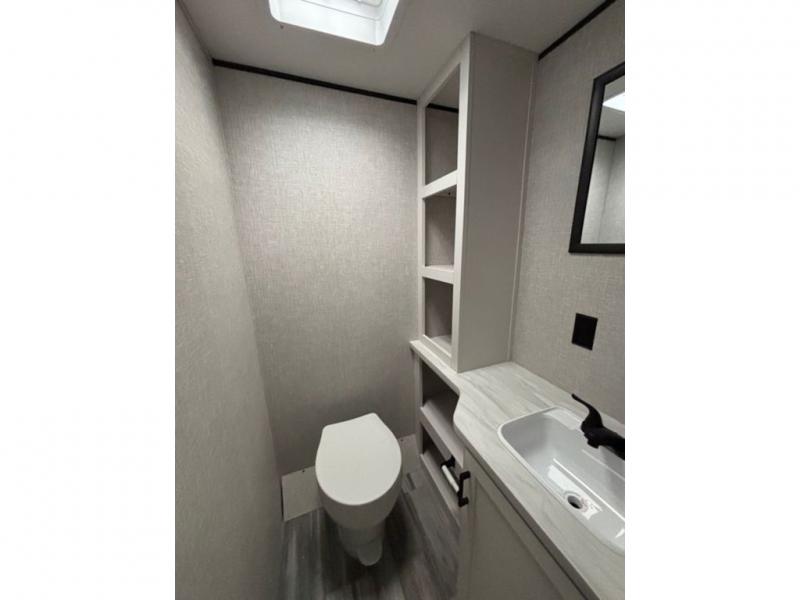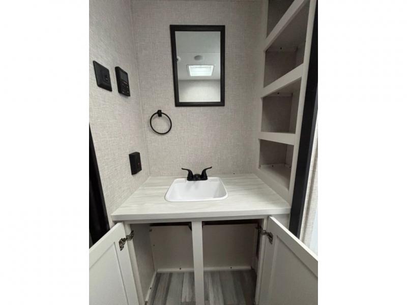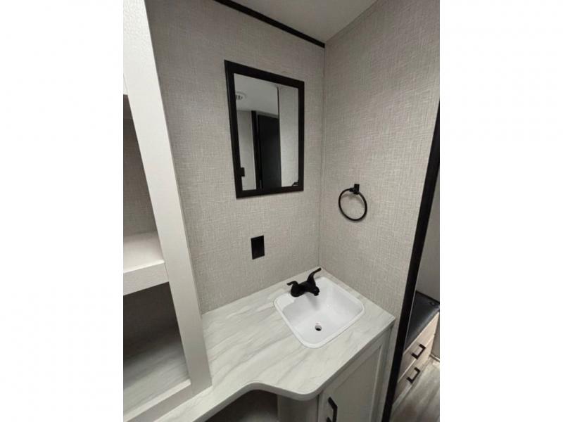 You can't go wrong with this Jay Flight in tow! The little ones or your guests will love the rear bunkhouse with 48" x 76" bunk beds plus a half bath here and counter space to set their things on. The front of this unit houses the private bedroom with a queen bed, and the full bath is close by for easy nighttime use. Everyone can meet in the main living area to play a game around the U-shaped dinette or sofa, and there is a wardrobe/entertainment center if you want to add an optional LED Smart TV. A fully-equipped kitchen lets you cook meals inside each day, but you may just find yourself outdoors cooking on the pull-out griddle with an LP Quick Connect!