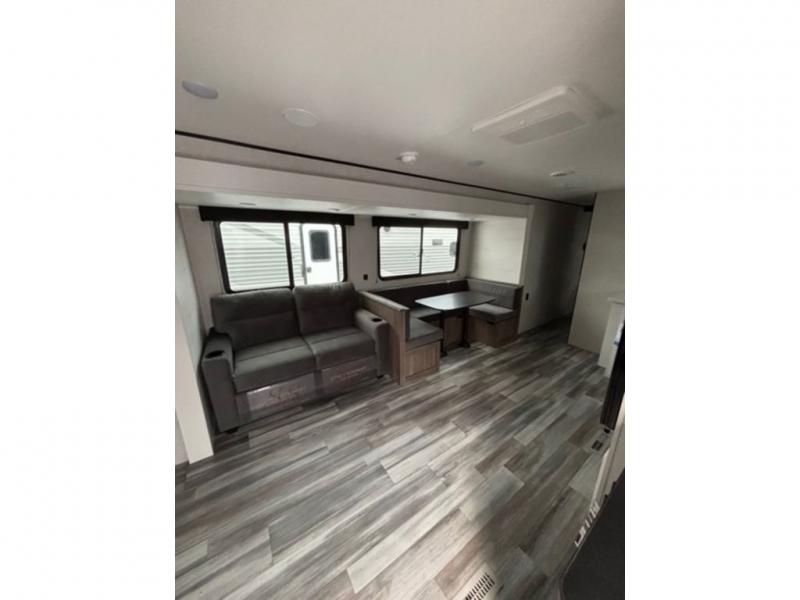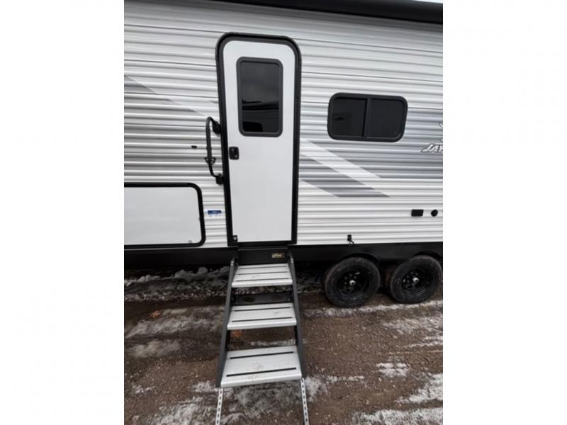 With any Jay Flight travel trailer or toy hauler by Jayco, you can enjoy camping trips to the max! There are a wide variety of floorplans to choose from, so whether you're looking for a couple's unit or bunkhouse model, there is sure to be a Jay Flight for you. Each model is constructed with a Magnum Truss roof system, an enclosed and heated underbelly, and I-Class cambered structural steel I-beams for added support. The interior will have you feeling right at home with residential-style kitchen countertops and hidden cabinet door hinges, vinyl flooring throughout, including slide floors, plus a 6' 9" ceiling height for added head space. The standard features continue on with the mandatory Customer Value Package that includes Keyed-Alike entry and baggage doors, an Overland 1 Solar Package, a Rock-Solid stabilizer system, backup and side view camera prep, and so much more!