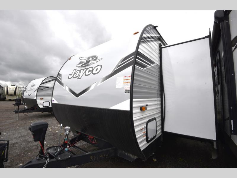 With any Jay Flight travel trailer or toy hauler by Jayco, you can enjoy camping trips to the max! There are a wide variety of floorplans to choose from, so whether you're looking for a couple's unit or bunkhouse model, there is sure to be a Jay Flight for you. Each model is constructed with a Magnum Truss roof system, an enclosed and heated underbelly, and I-Class cambered structural steel I-beams for added support. The interior will have you feeling right at home with residential-style kitchen countertops and hidden cabinet door hinges, vinyl flooring throughout, including slide floors, plus a 6' 9" ceiling height for added head space. The standard features continue on with the mandatory Customer Value Package that includes Keyed-Alike entry and baggage doors, an Overland 1 Solar Package, a Rock-Solid stabilizer system, backup and side view camera prep, and so much more!