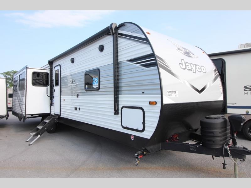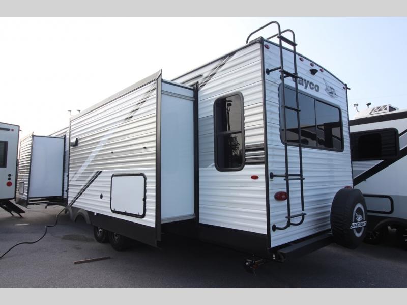With any Jay Flight travel trailer or toy hauler by Jayco, you can enjoy camping trips to the max! There are a wide variety of floorplans to choose from, so whether you're looking for a couple's unit or bunkhouse model, there is sure to be a Jay Flight for you. Each model is constructed with a Magnum Truss roof system, an enclosed and heated underbelly, and I-Class cambered structural steel I-beams for added support. The interior will have you feeling right at home with residential-style kitchen countertops and hidden cabinet door hinges, vinyl flooring throughout, including slide floors, plus a 6' 9" ceiling height for added head space. The standard features continue on with the mandatory Customer Value Package that includes Keyed-Alike entry and baggage doors, an Overland 1 Solar Package, a Rock-Solid stabilizer system, backup and side view camera prep, and so much more!