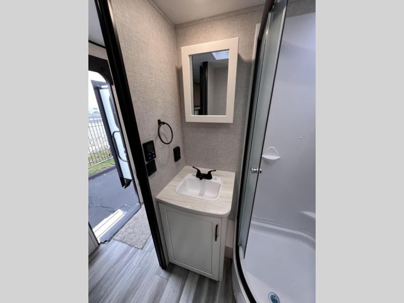 Each water tank is supported with large, oversized steel bars screwed to the frame, a design innovation that's proven to outperform the competitors’ aluminum strap supports. Protecting all this water is the one-piece fiberglass exterior wall, which is more resilient than pieces of metal on the exterior during travel. You’ll have a safe, comfortable ride and an equally solid camping experience thanks to the Rock Solid Stabilizer System. It has an electric tongue jack on the front A-frame and quick drop stabilizers that create a more stable camping platform. Outside, you can enjoy morning breakfast more quickly than ever with the LP Quick Connect that comes standard on Jay Flight and either optional or standard 17” griddle. From weekend warriors to full-timers, Jay Flight has what you need for an excellent camping trip