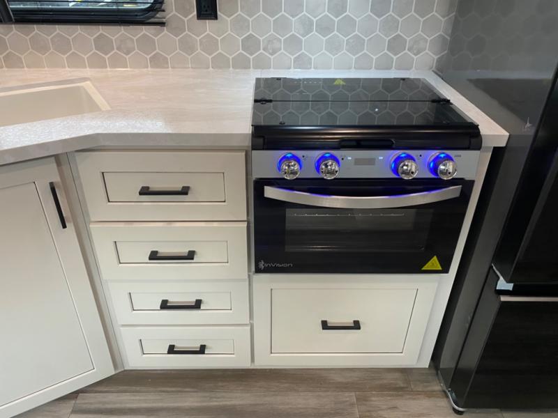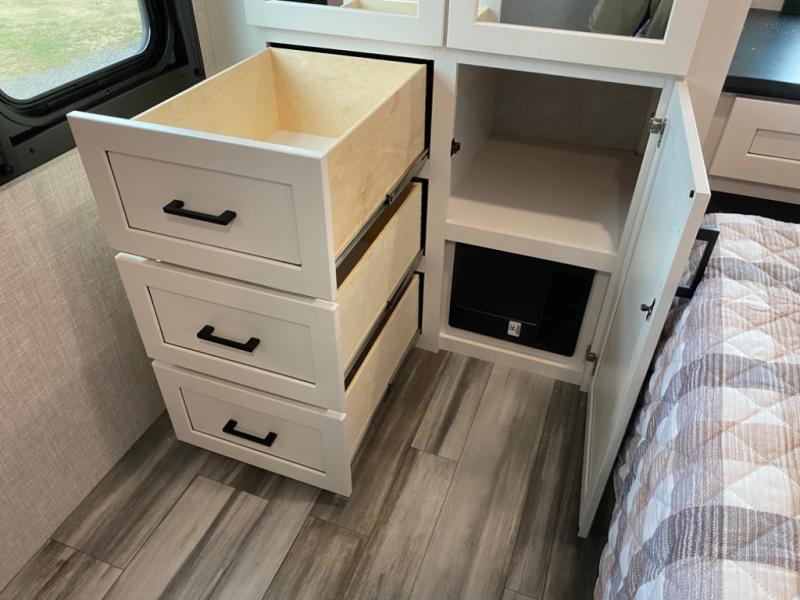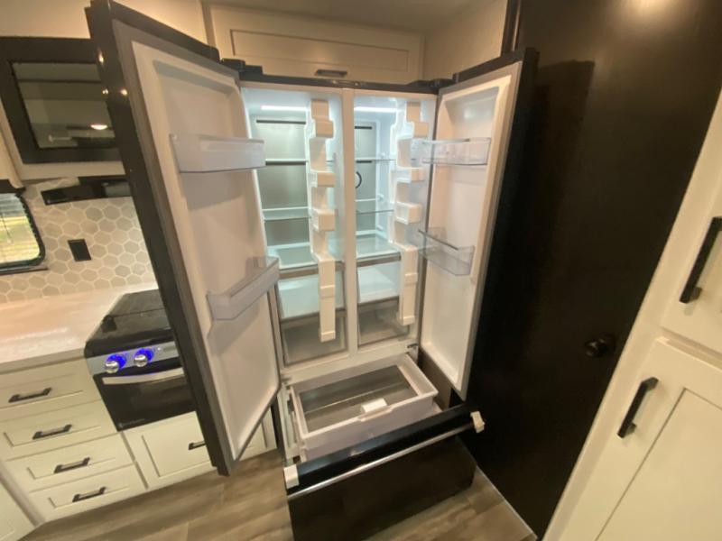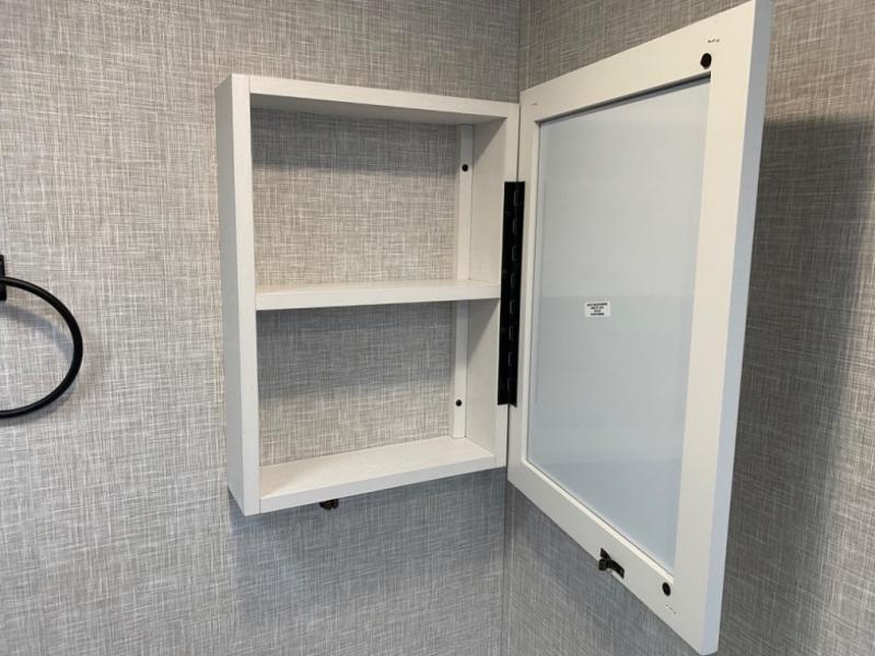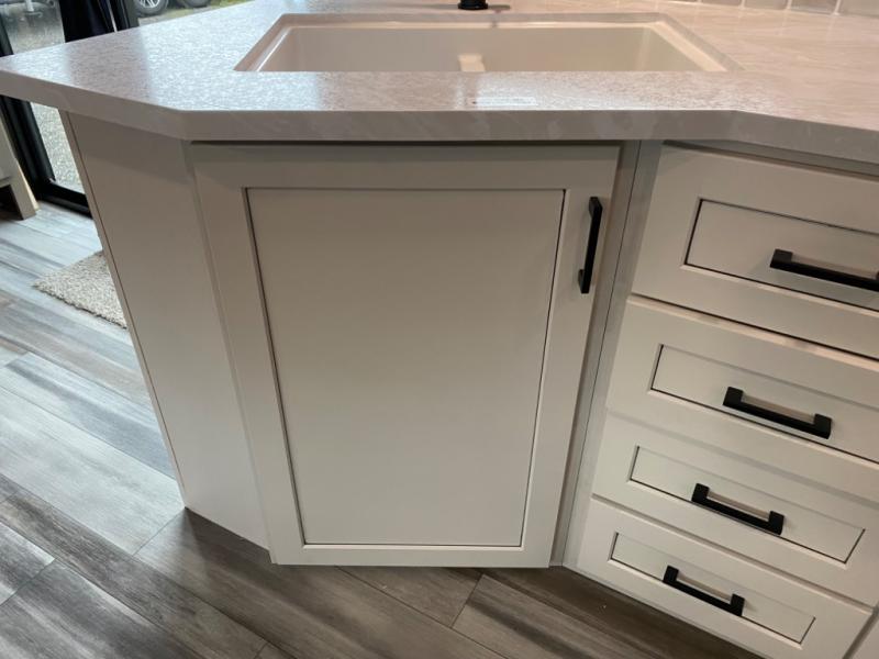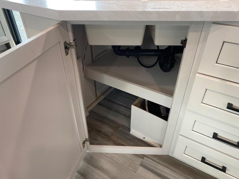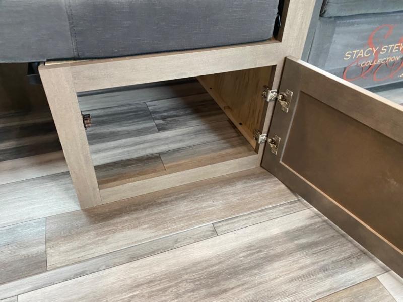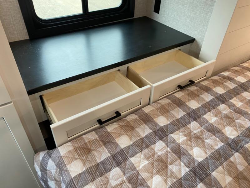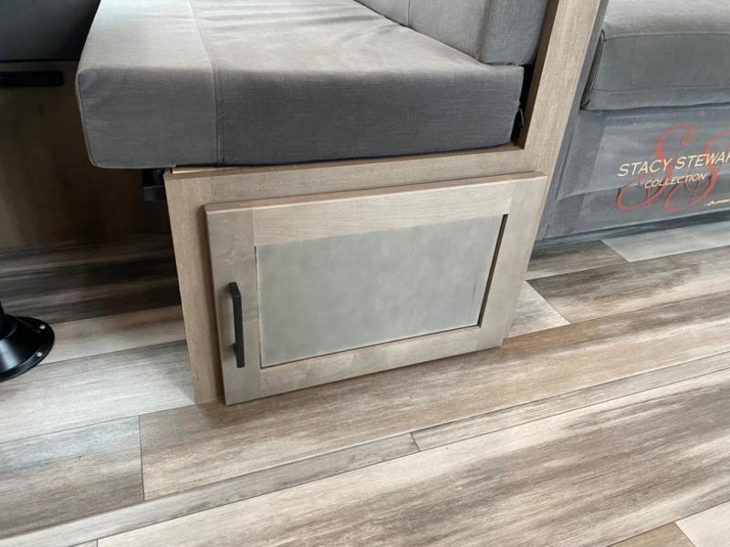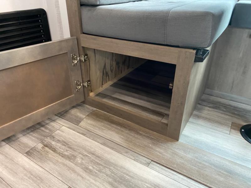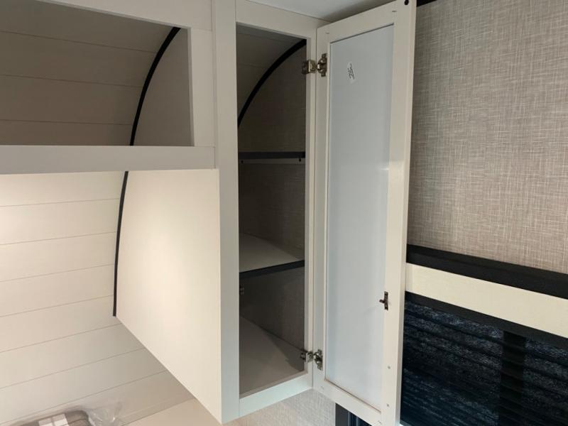 With two private bedrooms, everyone will have a comfortable place to sleep in this travel trailer! The front private bedroom has a 60" x 75" queen bed with wardrobes on either side and the rear private bedroom has a 60" x 80" queen bed slide with a dresser, a wardrobe, one of the exit/entrance doors, and an entrance into the walk-through bathroom which has a radius shower for everyone to stay squeaky clean. The patio doors not only make it easy to enter and exit the unit, but also bring in tons of natural lighting. After you have prepared a delicious home cooked meal, you can can head to the U-shaped dinette to enjoy it there comfortably then relax on the Jack-knife sofa across from the entertainment center!