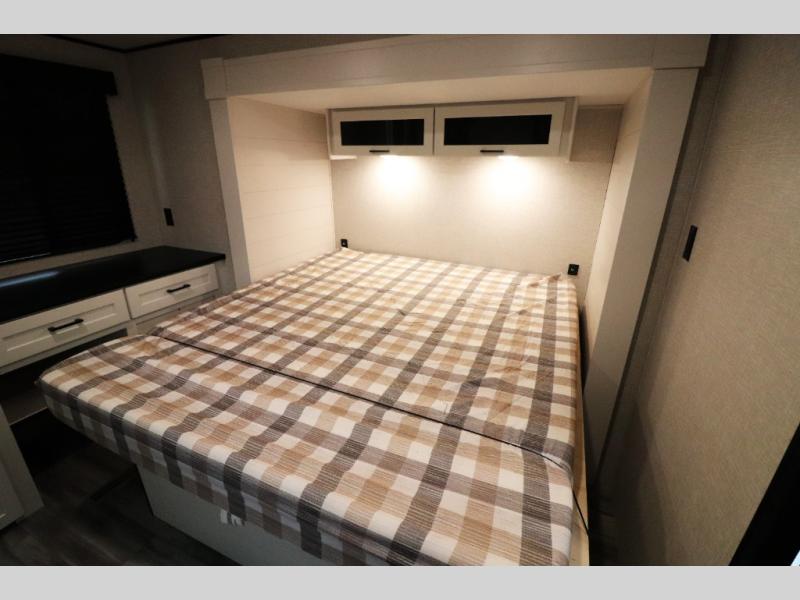 This model is ideal for families and couples seeking a spacious, well-appointed travel trailer. With two private bedrooms, it offers flexibility and comfort for various travel companions. The modern amenities and optional upgrades ensure a personalized camping experience tailored to your needs.