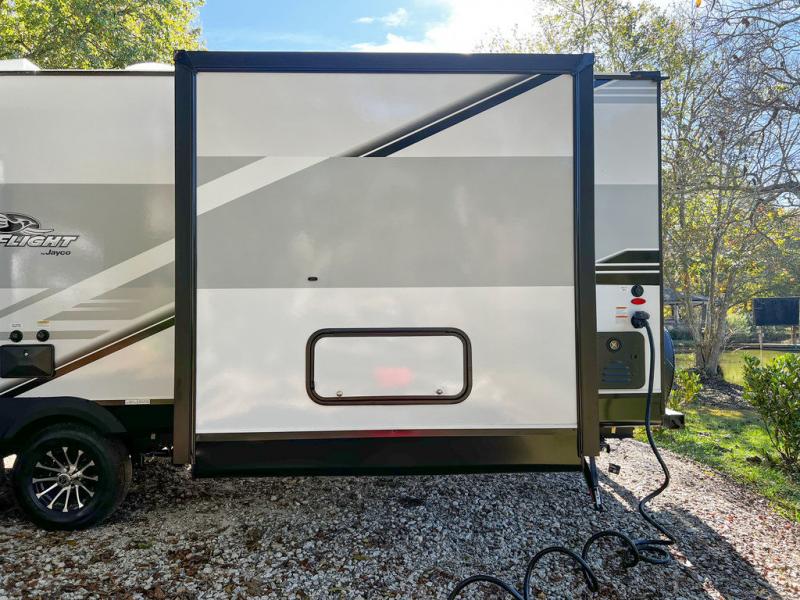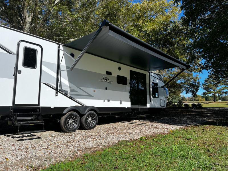With any Jay Flight travel trailer or toy hauler by Jayco, you can enjoy camping trips to the max! There are a wide variety of floorplans to choose from, so whether you're looking for a couple's unit or bunkhouse model, there is sure to be a Jay Flight for you. Each model is constructed with a Magnum Truss roof system, an enclosed and heated underbelly, and I-Class cambered structural steel I-beams for added support. The interior will have you feeling right at home with residential-style kitchen countertops and hidden cabinet door hinges, vinyl flooring throughout, including slide floors, plus a 6' 9" ceiling height for added head space. The standard features continue on with the mandatory Customer Value Package that includes Keyed-Alike entry and baggage doors, an Overland 1 Solar Package, a Rock-Solid stabilizer system, backup and side view camera prep, and so much more!