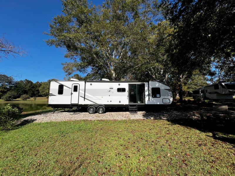 The 2025 Jayco Jay Flight 380DQS is the ultimate destination trailer, featuring dual private bedrooms, a spacious central living area, residential-style kitchen, and Jayco’s renowned durability