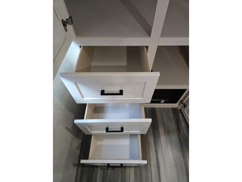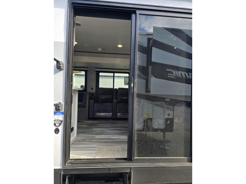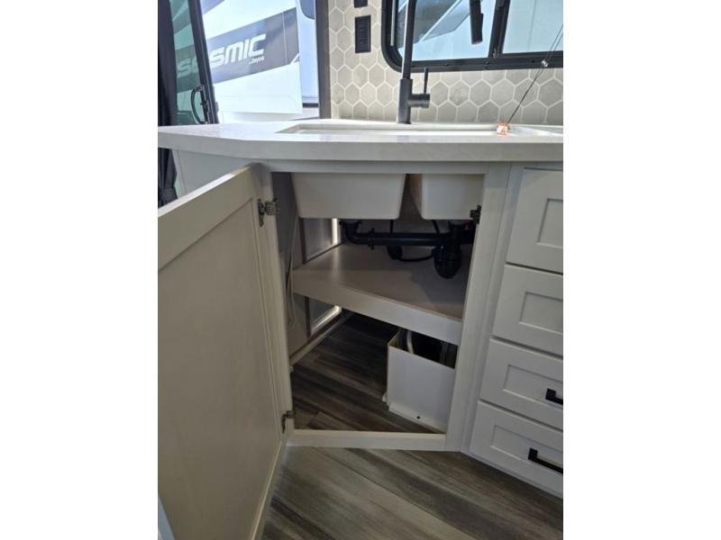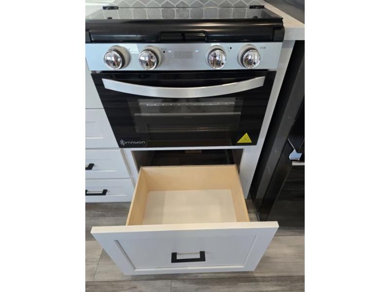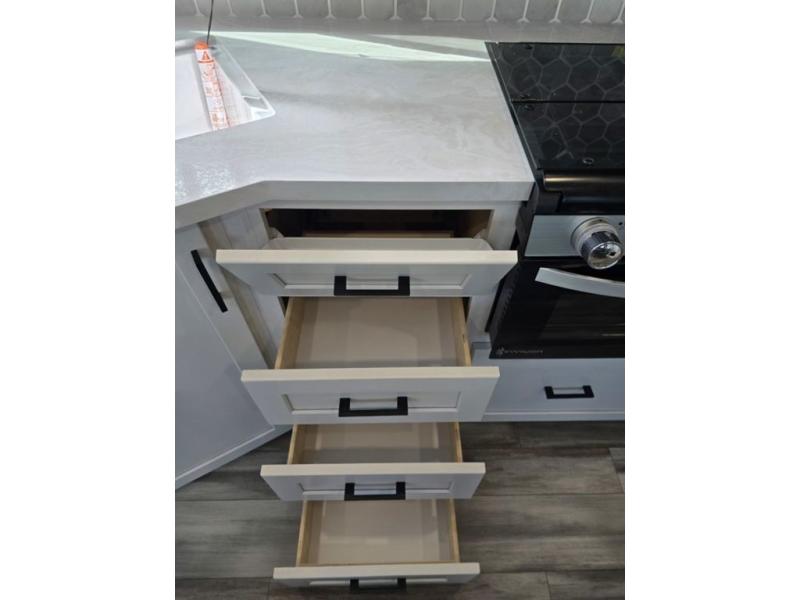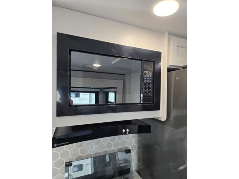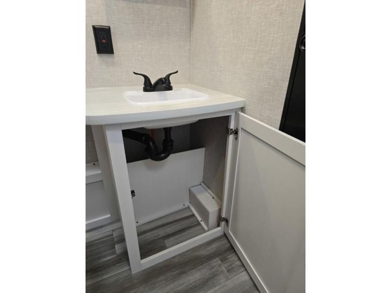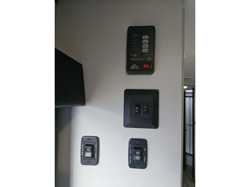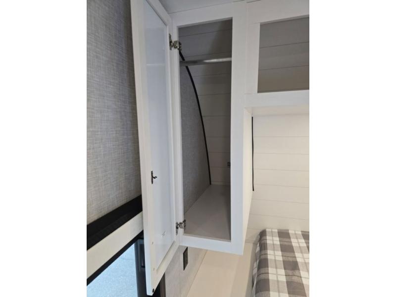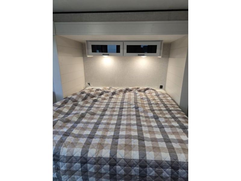 With two private bedrooms, everyone will have a comfortable place to sleep in this travel trailer! The front private bedroom has a 60" x 75" queen bed with wardrobes on either side and the rear private bedroom has a 60" x 80" queen bed slide with a dresser, a wardrobe, one of the exit/entrance doors, and an entrance into the walk-through bathroom which has a radius shower for everyone to stay squeaky clean. The patio doors not only make it easy to enter and exit the unit, but also bring in tons of natural lighting. After you have prepared a delicious home cooked meal, you can can head to the U-shaped dinette to enjoy it there comfortably then relax on the Jack-knife sofa across from the entertainment center!