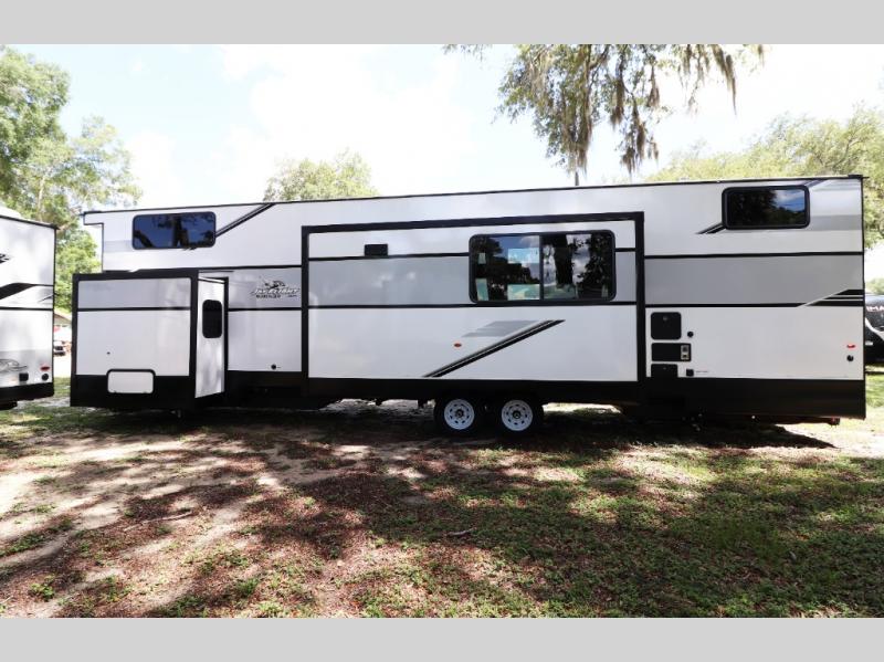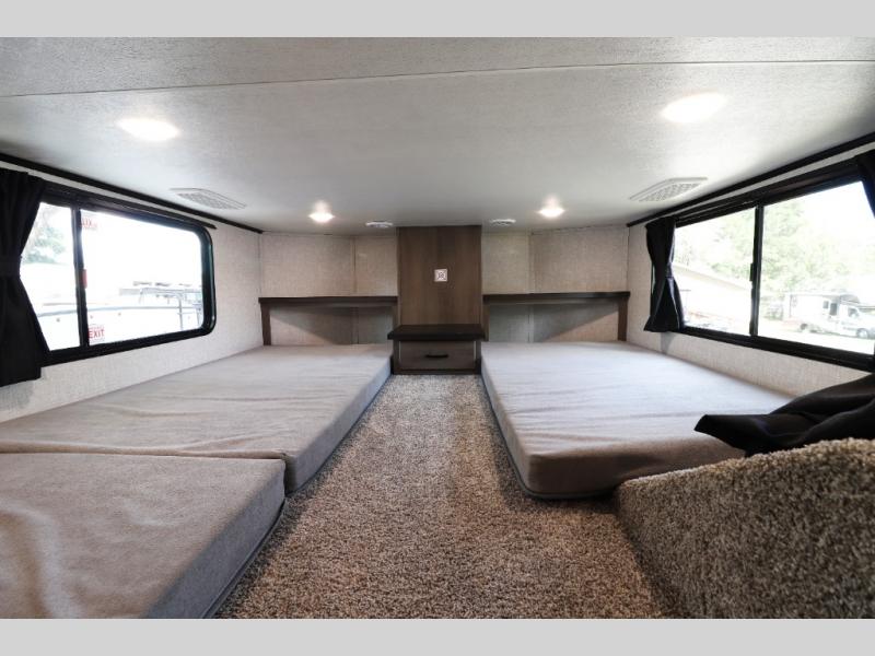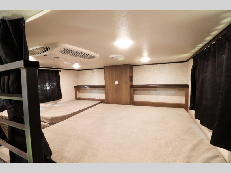 Families will appreciate multi-level sleeping (lofts, bunk mats, hide-a-bed) and full rear bath with washer/dryer prep.