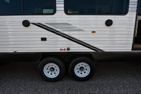Each Jay Flight Bungalow travel trailer by Jayco features a Magnum Truss roof system, an 8' 6" wide-body construction, and an insulated and enclosed underbelly for added protection against the elements. You will love the open living space and the atrium-style front wall, along with oversized side windows and hardwood look vinyl flooring. A central vacuum with a push button retract makes cleaning and hose storage easier than ever, and the four burner gas range and 30" microwave will complete the chef's dream kitchen. These travel trailers also include an AM/FM/Bluetooth stereo and marine grade exterior speakers, a power awning with an LED light, an outside shower, plus many more exterior conveniences!