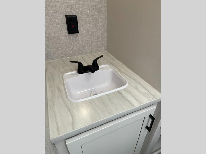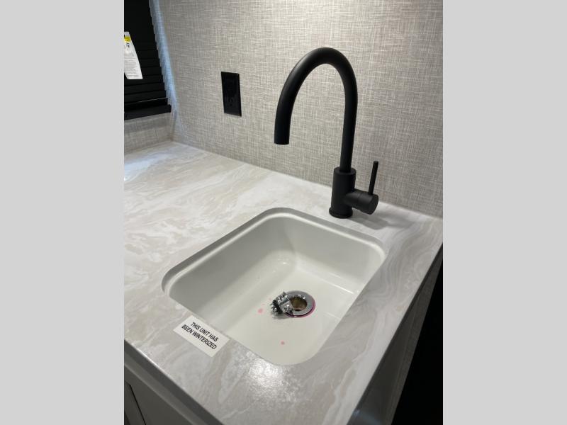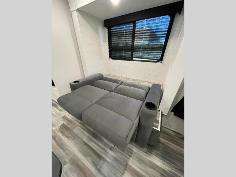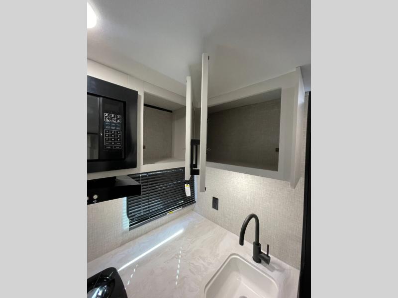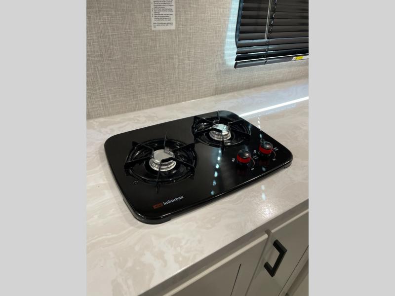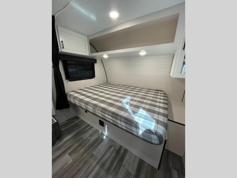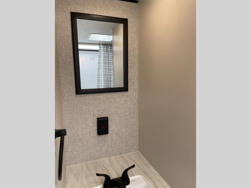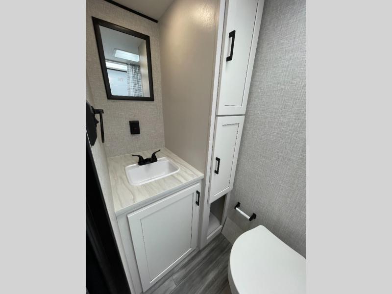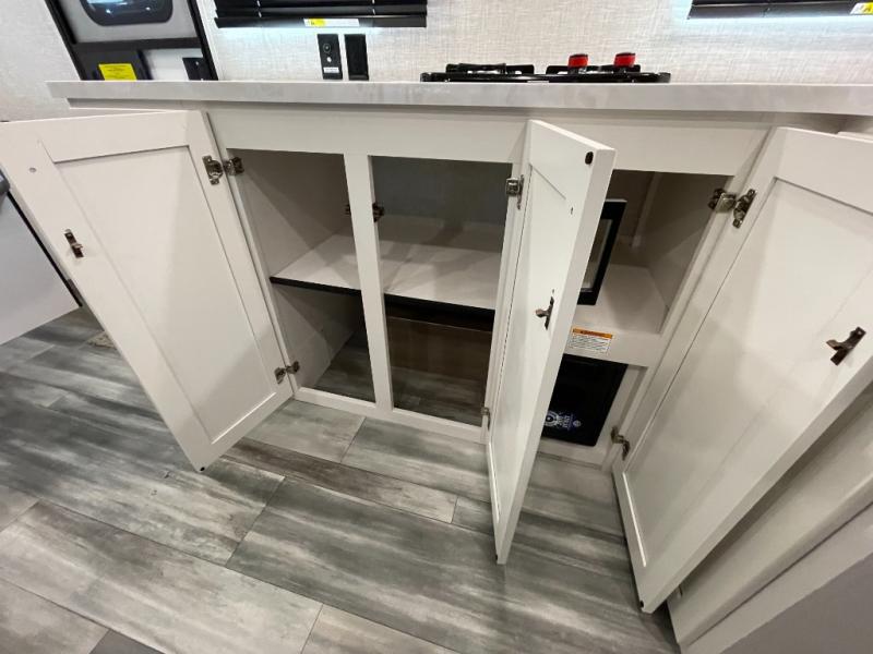 This single-axle couple's travel trailer is sure to bring you happiness at the campground. There is a front queen bed with a privacy curtain if you have a guest staying over on the jack-knife sofa, and the movable table in front of the sofa will provide more floor space when needed. A cooktop and microwave oven will let you make meals each day, and an 8 cu. ft. 12V refrigerator will be perfect for perishables. This model also includes a full rear bath with a tub/shower, a toilet, plus a sink and a linen closet for clean towels. The optional STX Edition can be added on this model which includes 16 in. off-road tires, triple entry steps, a power tongue jack, and more!