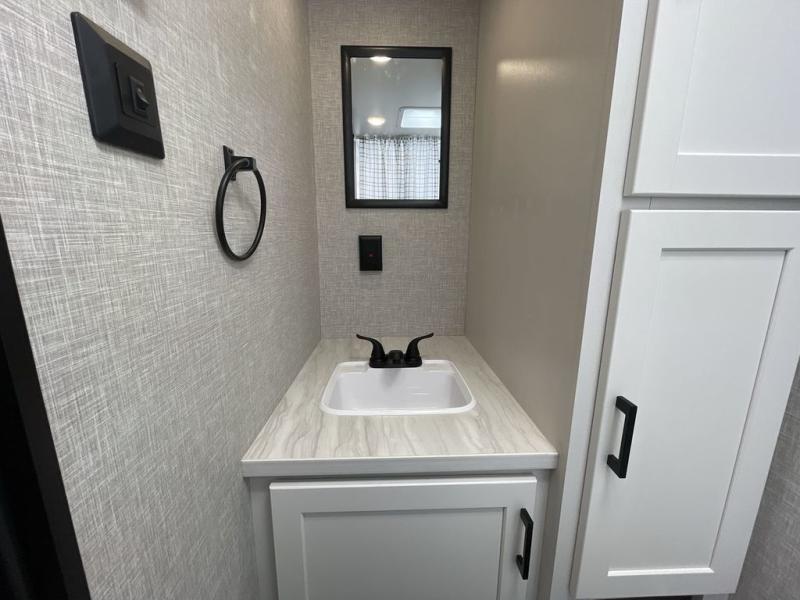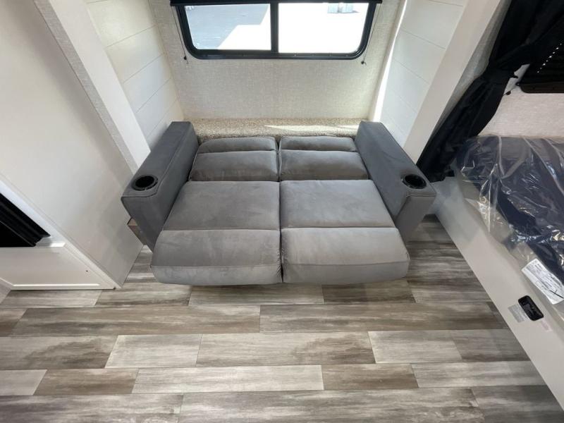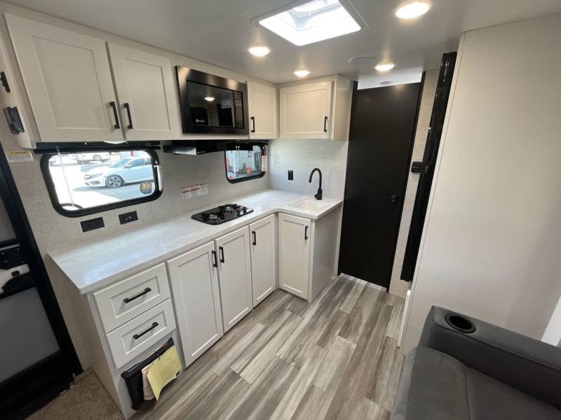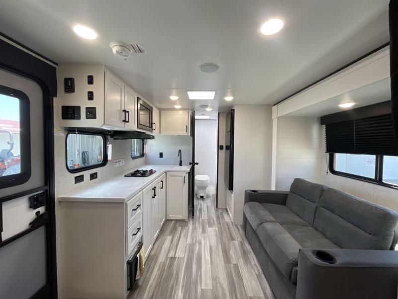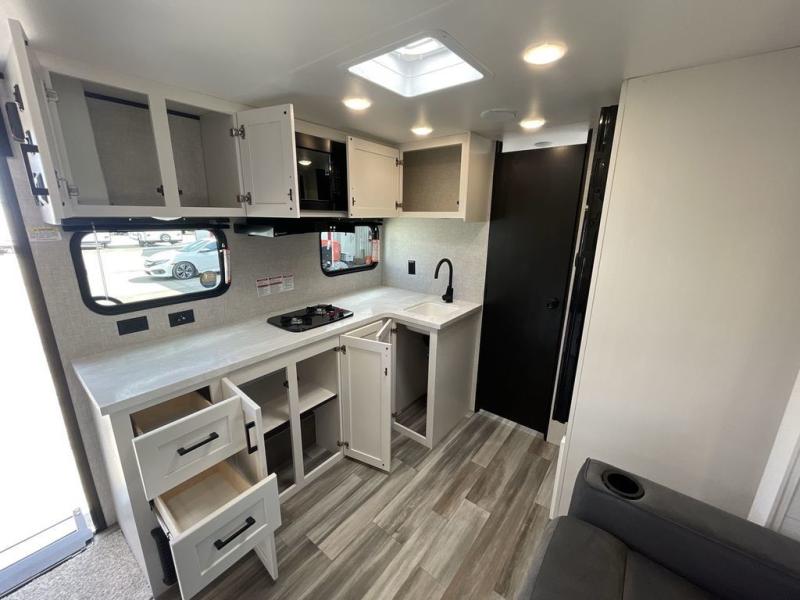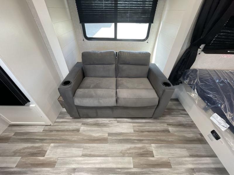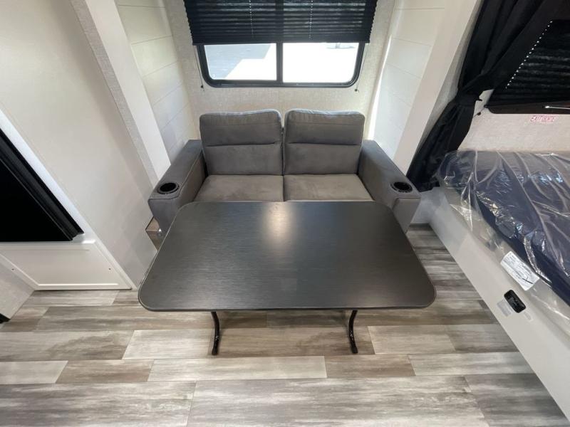This single-axle couple's travel trailer is sure to bring you happiness at the campground. There is a front queen bed with a privacy curtain if you have a guest staying over on the jack-knife sofa, and the movable table in front of the sofa will provide more floor space when needed. A cooktop and microwave oven will let you make meals each day, and an 8 cu. ft. 12V refrigerator will be perfect for perishables. This model also includes a full rear bath with a tub/shower, a toilet, plus a sink and a linen closet for clean towels. The optional STX Edition can be added on this model which includes 16 in. off-road tires, triple entry steps, a power tongue jack, and more!
