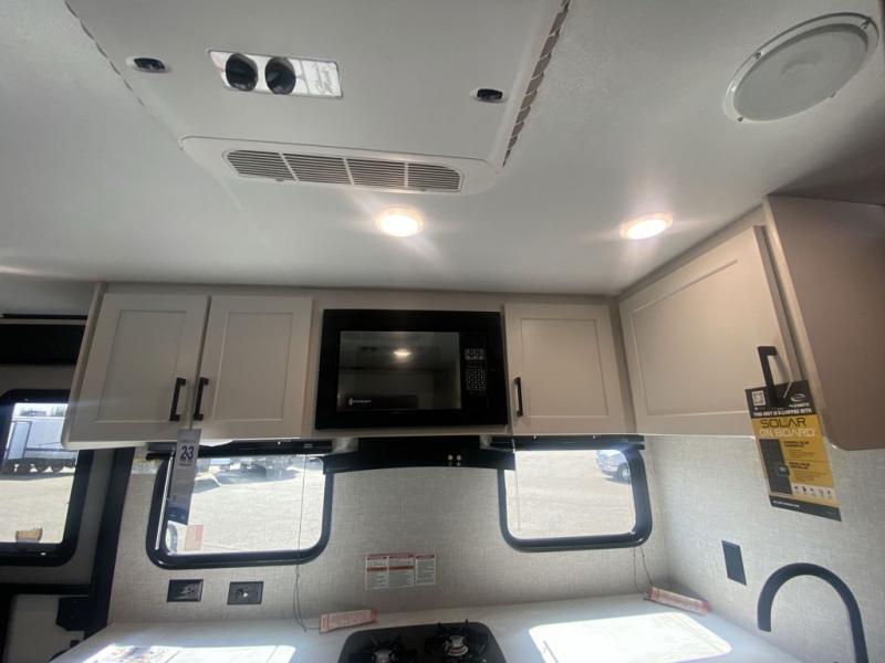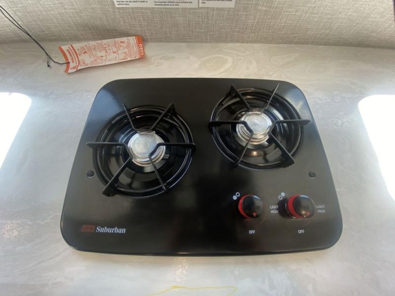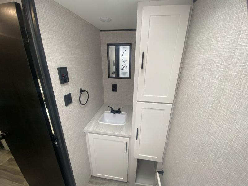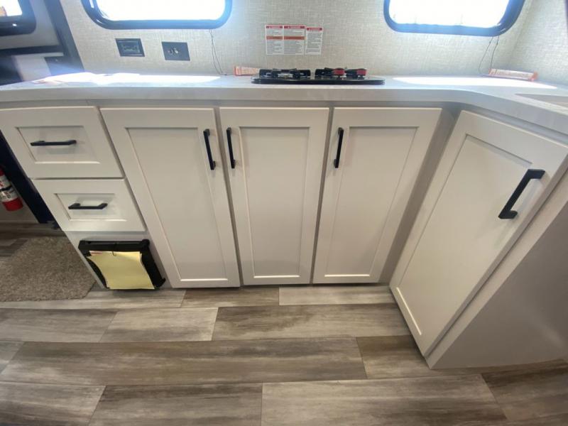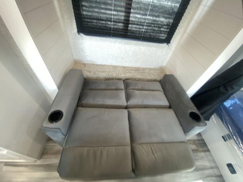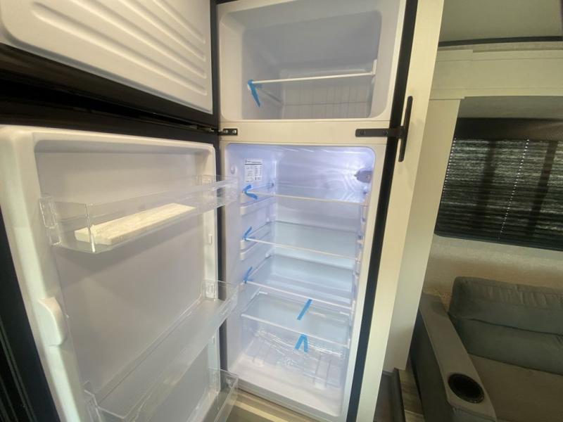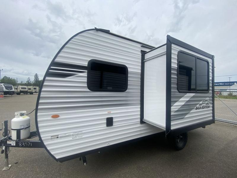 This single-axle couple's travel trailer is sure to bring you happiness at the campground. There is a front queen bed with a privacy curtain if you have a guest staying over on the jack-knife sofa, and the movable table in front of the sofa will provide more floor space when needed. A cooktop and microwave oven will let you make meals each day, and an 8 cu. ft. 12V refrigerator will be perfect for perishables. This model also includes a full rear bath with a tub/shower, a toilet, plus a sink and a linen closet for clean towels. The optional Baja Package can be added on this model which includes 16 in. off-road tires, a deluxe graphics package, triple entry steps, and more!