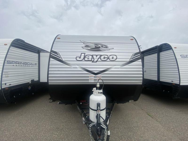 The Jayco Jay Flight SLX travel trailer is quite easy to own because it is lightweight for an easier towing experience. Built on a fully integrated A-frame with galvanized-steel, impact-resistant wheel wells, the Jay Flight SLX has quality at its very foundation. That quality continues on to the electric self-adjusting brakes, easy-lube hubs, Magnum Truss roof system, and LP quick connect. Some of what the mandatory Customer Value Package includes is backup camera prep, Keyed-Alike entry and baggage doors, marine grade exterior speakers, and an on-demand tankless water heater.