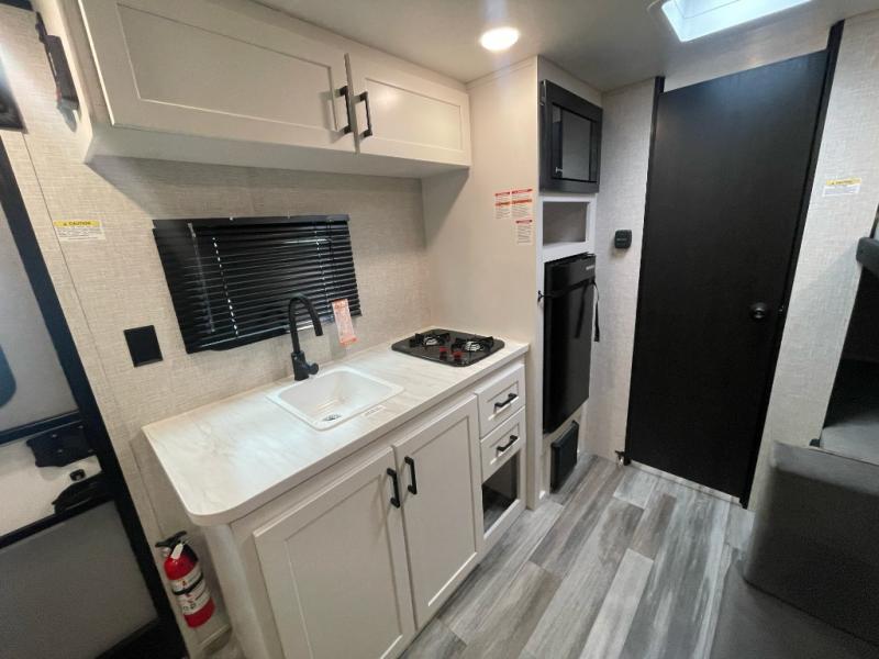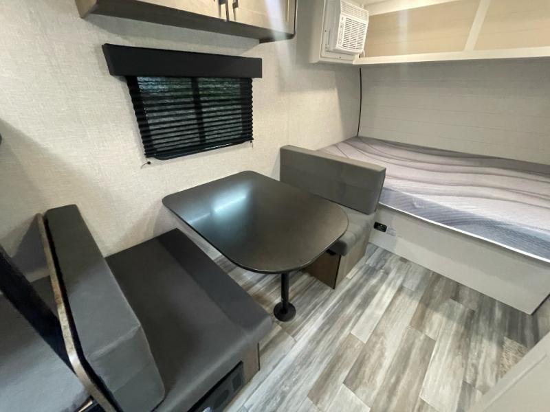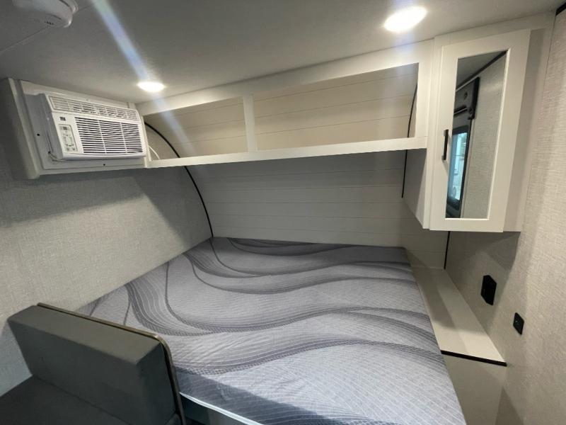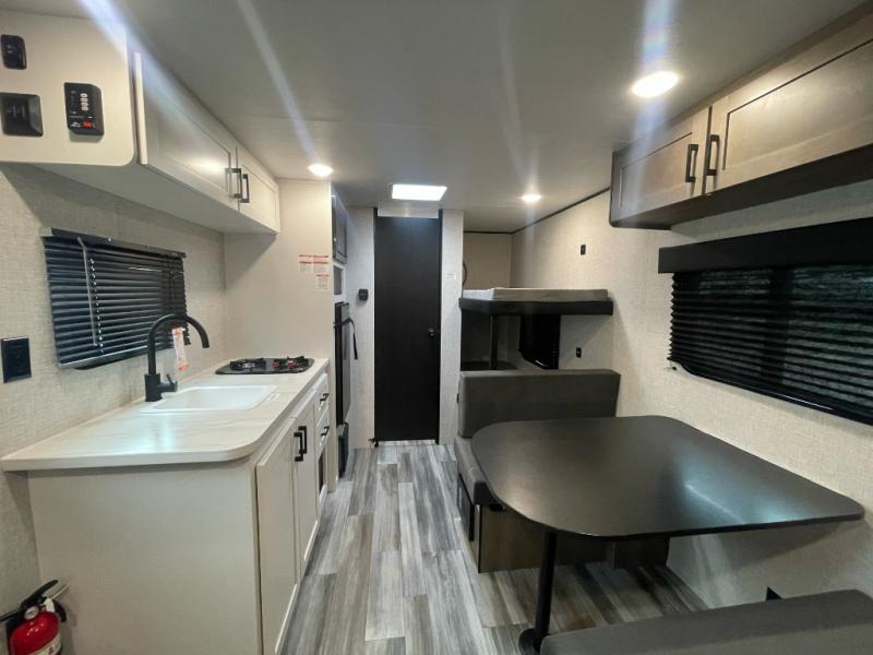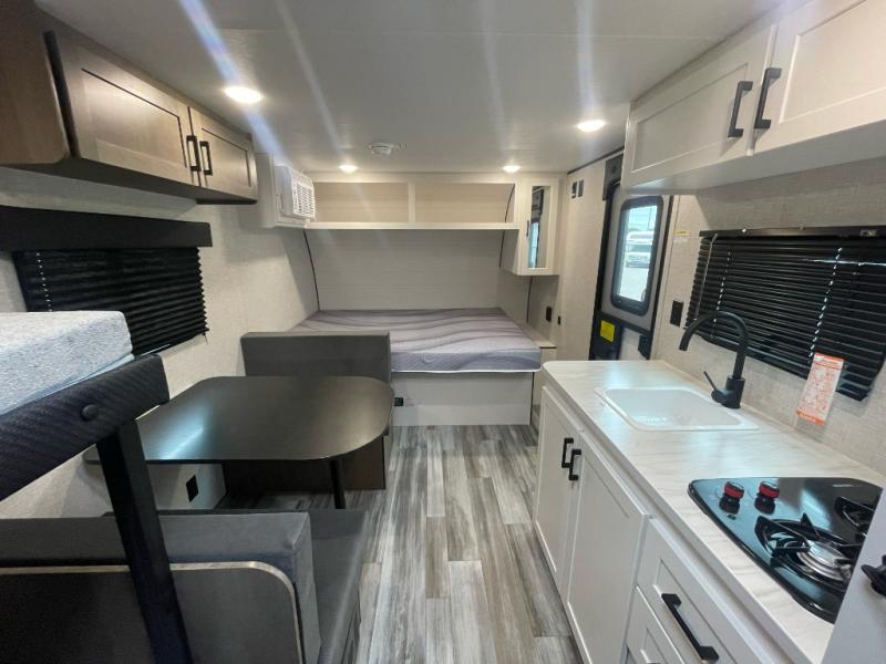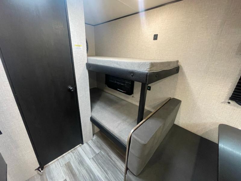 Your crew of five will love camping in this single-axle travel trailer! There are bunk beds in the rear corner and a full bath in the other rear corner for easy nighttime use. You will have the front queen bed to yourselves, along with an overhead shelf and a nightstand/wardrobe for your clothes. The booth dinette provides a place to dine, play games, and even let an extra guest stay over. The Customer Value Package on this Sport Edition model includes a 19K BTU furnace, stabilizer jacks, a power awning, an entry door with a window and shade prep, and many more stand-out features!