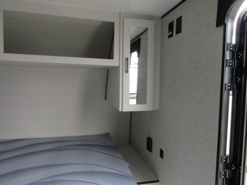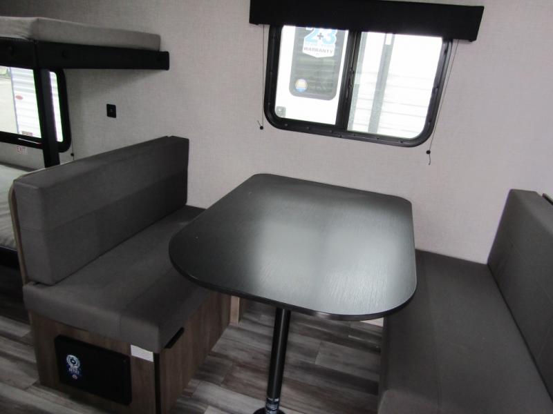 Your crew of five will love camping in this single-axle travel trailer! There are bunk beds in the rear corner and a full bath in the other rear corner for easy nighttime use. You will have the front queen bed to yourselves, along with an overhead shelf and a nightstand/wardrobe for your clothes. The booth dinette provides a place to dine, play games, and even let an extra guest stay over. The Customer Value Package on this Sport Edition model includes a 19K BTU furnace, stabilizer jacks, a power awning, an entry door with a window and shade prep, and many more stand-out features!