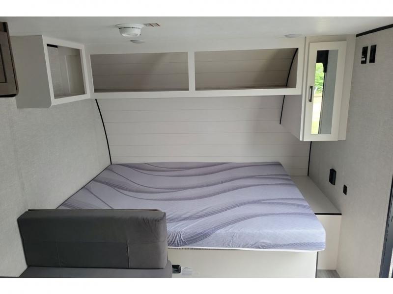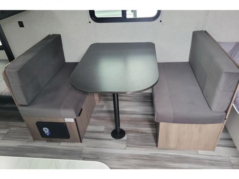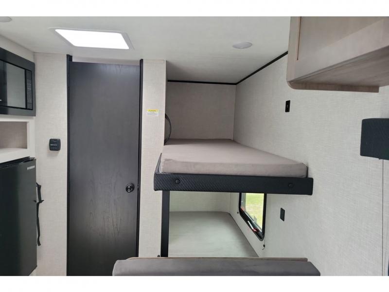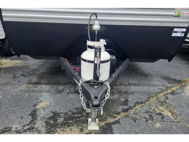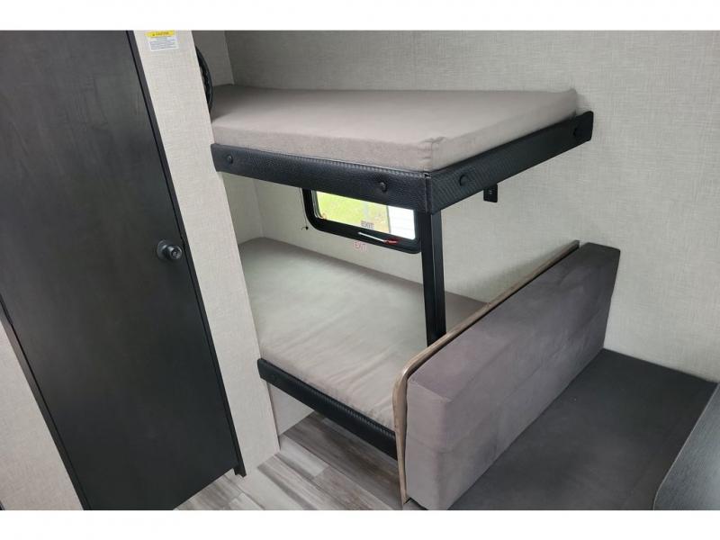 Your crew of five will love camping in this single-axle travel trailer! There are bunk beds in the rear corner and a full bath in the other rear corner for easy nighttime use. You will have the front queen bed to yourselves, along with an overhead shelf and a nightstand/wardrobe for your clothes. The booth dinette provides a place to dine, play games, and even let an extra guest stay over. The Customer Value Package on this Sport Edition model includes a 19K BTU furnace, stabilizer jacks, a power awning, an entry door with a window and shade prep, and many more stand-out features!