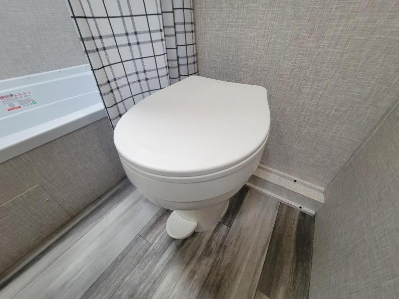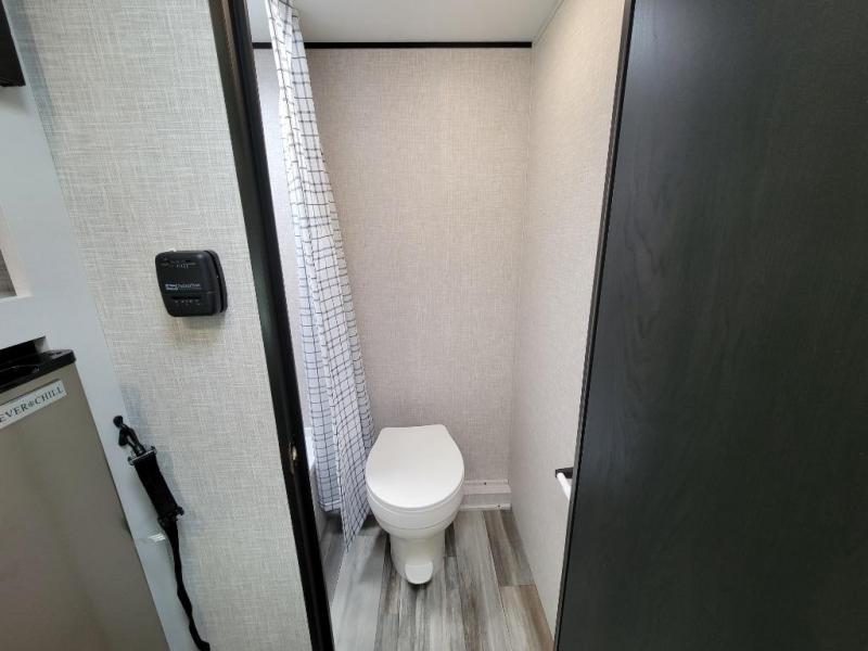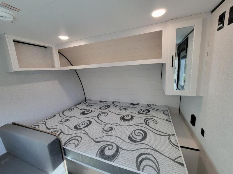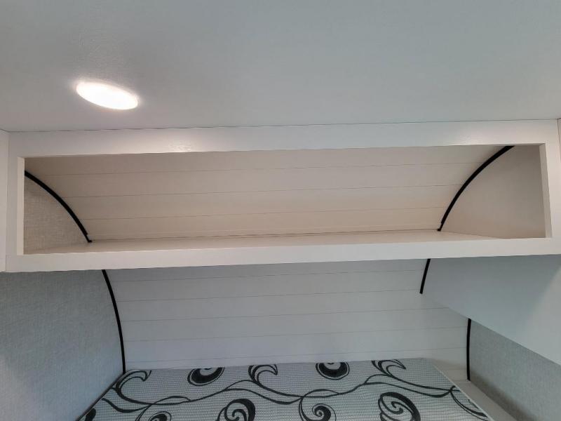 - Front Queen Bed: Offers a comfortable sleeping space with convenient storage, including an overhead shelf and a nightstand/wardrobe.