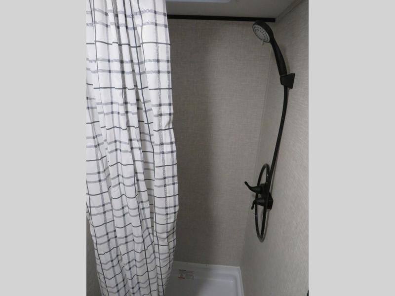 This travel trailer includes everything you need for fun trips at the lake. When you arrive at the campground, you can unload the exterior storage, then put out the 10' power awning. The booth dinette inside will provide a place to dine together, and the full rear bath with a 24" x 32" shower will make it easier than ever to clean up after a day of hiking. A front RV queen bed will provide a great night's rest, and the overhead shelf will be perfect for books or personal belongings. The optional STX Edition can be added on this model which features 16 in. off-road tires, triple entry steps, a power tongue jack, and more!
