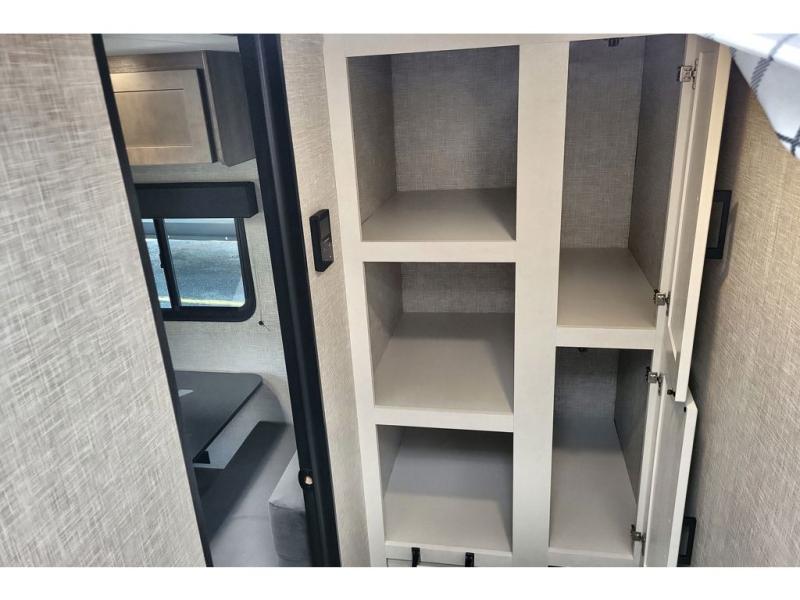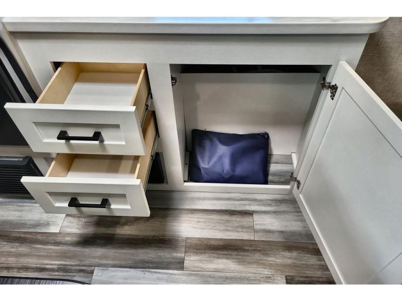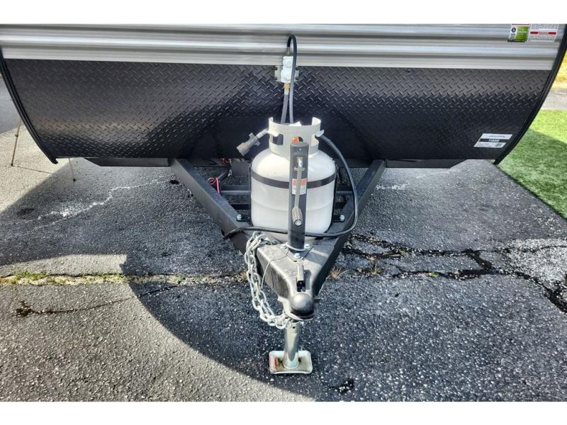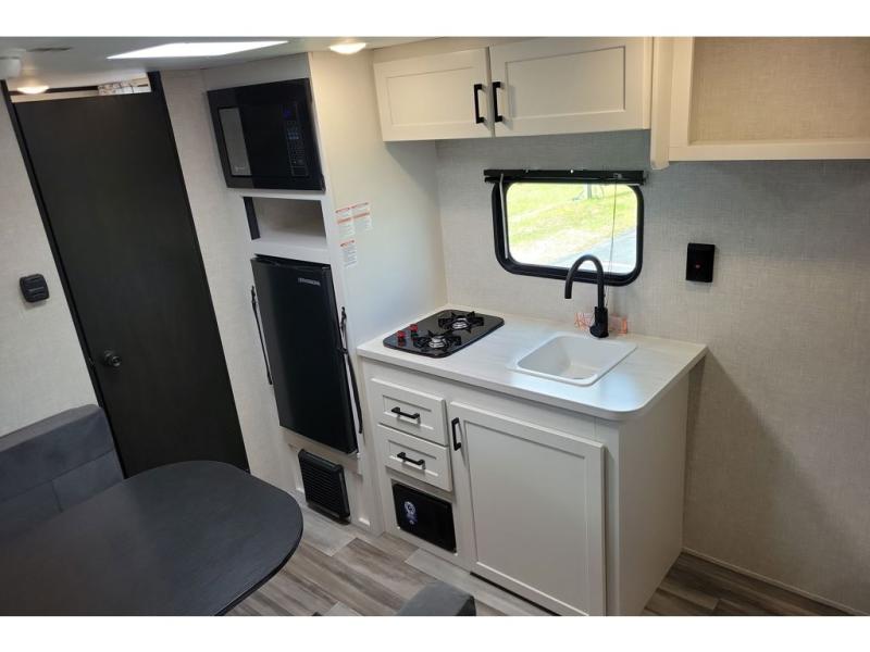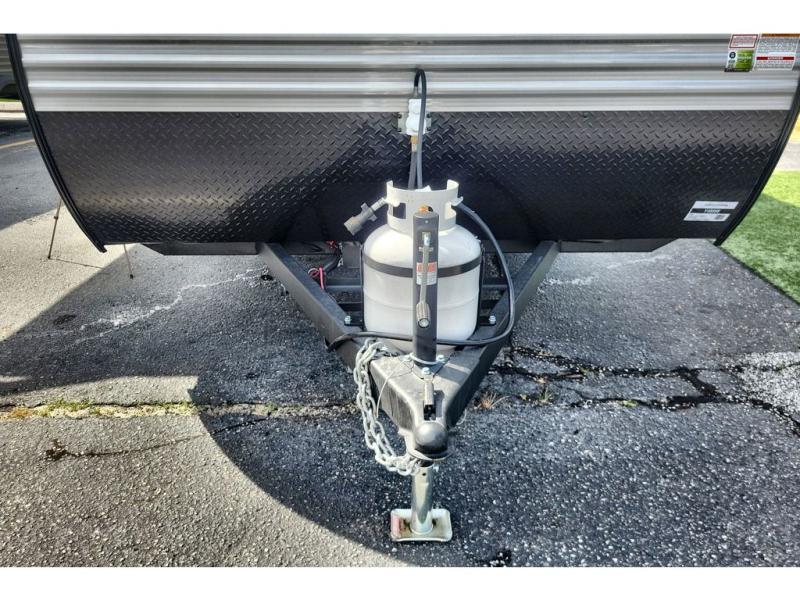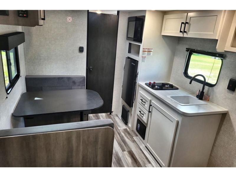 This travel trailer includes everything you need for fun trips at the lake. When you arrive at the campground, you can unload the exterior storage, then put out the 10' power awning. The booth dinette inside will provide a place to dine together, and the full rear bath with a 24" x 32" shower will make it easier than ever to clean up after a day of hiking. A front RV queen bed will provide a great night's rest, and the overhead shelf will be perfect for books or personal belongings. The optional STX Edition can be added on this model which features 16 in. off-road tires, triple entry steps, a power tongue jack, and more!