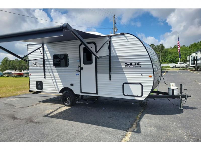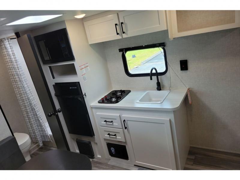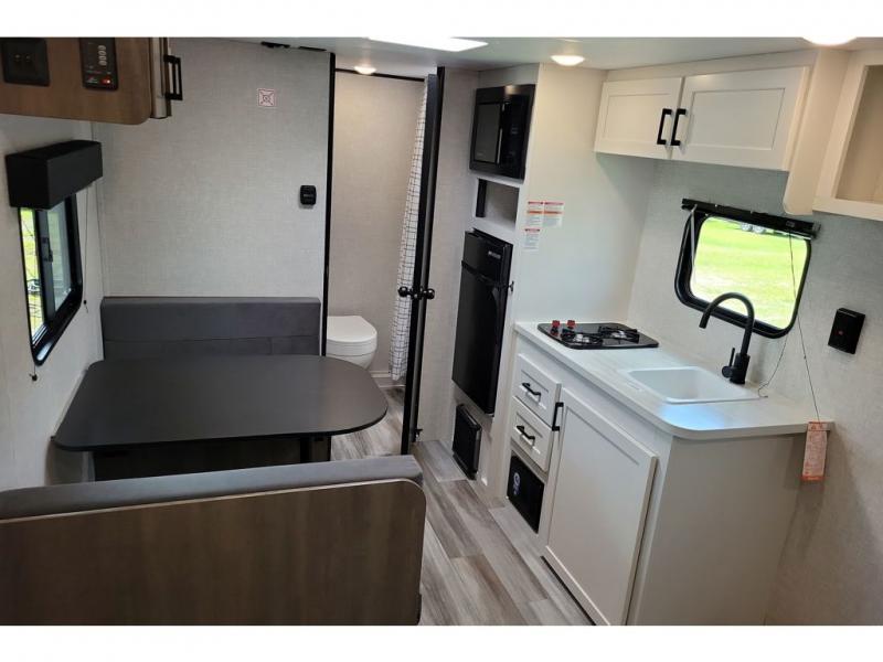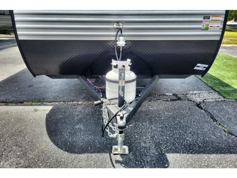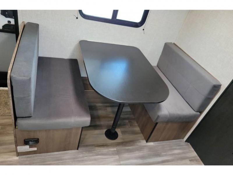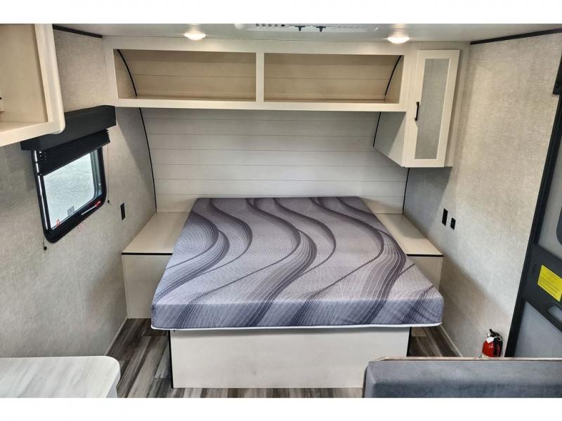 This travel trailer includes everything you need for fun trips at the lake. When you arrive at the campground, you can unload the exterior storage, then put out the 10' power awning. The booth dinette inside will provide a place to dine together, and the full rear bath with a 24" x 32" shower will make it easier than ever to clean up after a day of hiking. A front RV queen bed will provide a great night's rest, and the overhead shelf will be perfect for books or personal belongings. The optional STX Edition can be added on this model which features 16 in. off-road tires, triple entry steps, a power tongue jack, and more!
