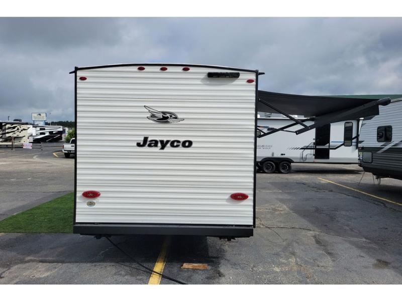 The Jayco Jay Flight SLX travel trailer is quite easy to own because it is lightweight for an easier towing experience. Built on a fully integrated A-frame with galvanized-steel, impact-resistant wheel wells, the Jay Flight SLX has quality at its very foundation. That quality continues on to the electric self-adjusting brakes, easy-lube hubs, Magnum Truss roof system, and LP quick connect. Some of what the mandatory Customer Value Package includes is backup camera prep, Keyed-Alike entry and baggage doors, marine grade exterior speakers, and an on-demand tankless water heater.