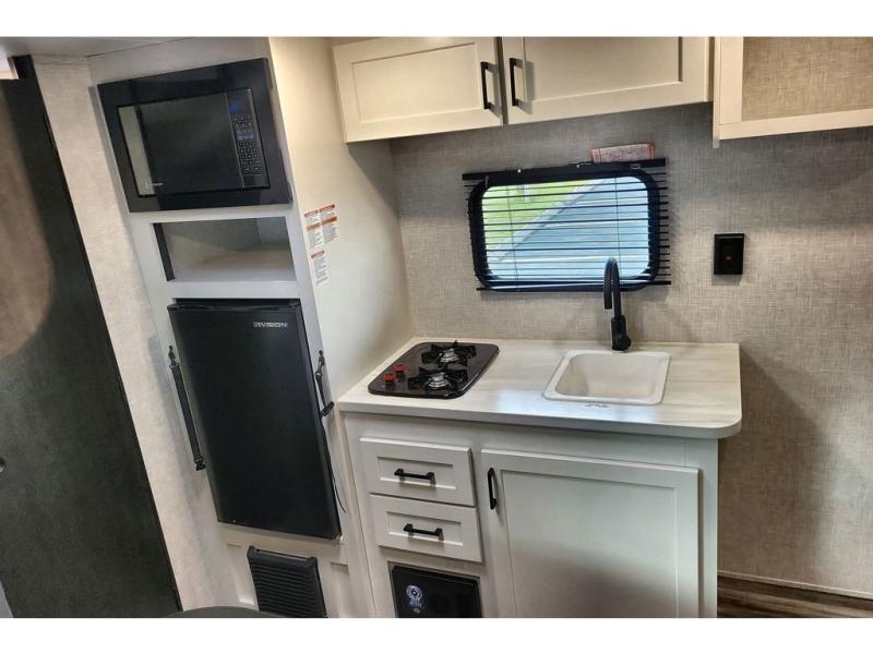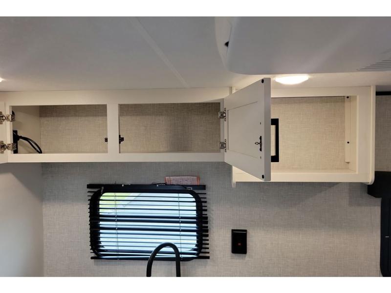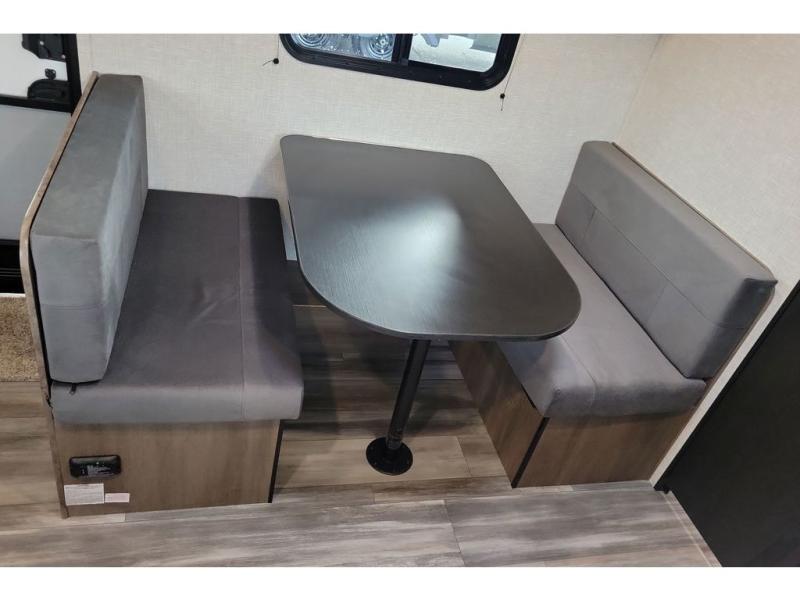This travel trailer includes everything you need for fun trips at the lake. When you arrive at the campground, you can unload the exterior storage, then put out the 10' power awning. The booth dinette inside will provide a place to dine together, and the full rear bath with a 24" x 32" shower will make it easier than ever to clean up after a day of hiking. A front RV queen bed will provide a great night's rest, and the overhead shelf will be perfect for books or personal belongings. The optional STX Edition can be added on this model which features 16 in. off-road tires, triple entry steps, a power tongue jack, and more!