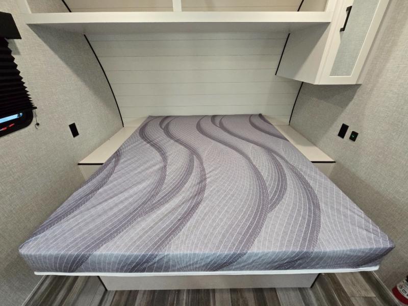 - Front Queen Bed: The front sleeping area includes a comfortable queen bed with convenient bedside storage, allowing you to rest easy and keep essentials within reach.