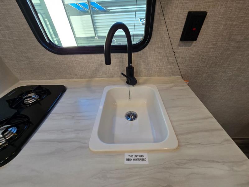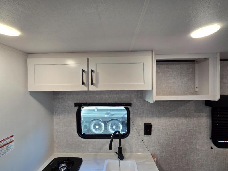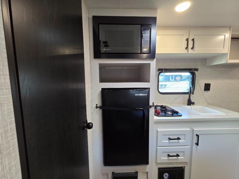 - Fully-Equipped Kitchen: The compact kitchen is designed with a two-burner cooktop, microwave, refrigerator, and ample storage, making it easy to prepare meals wherever your adventures take you.