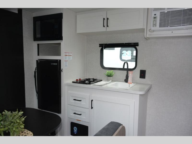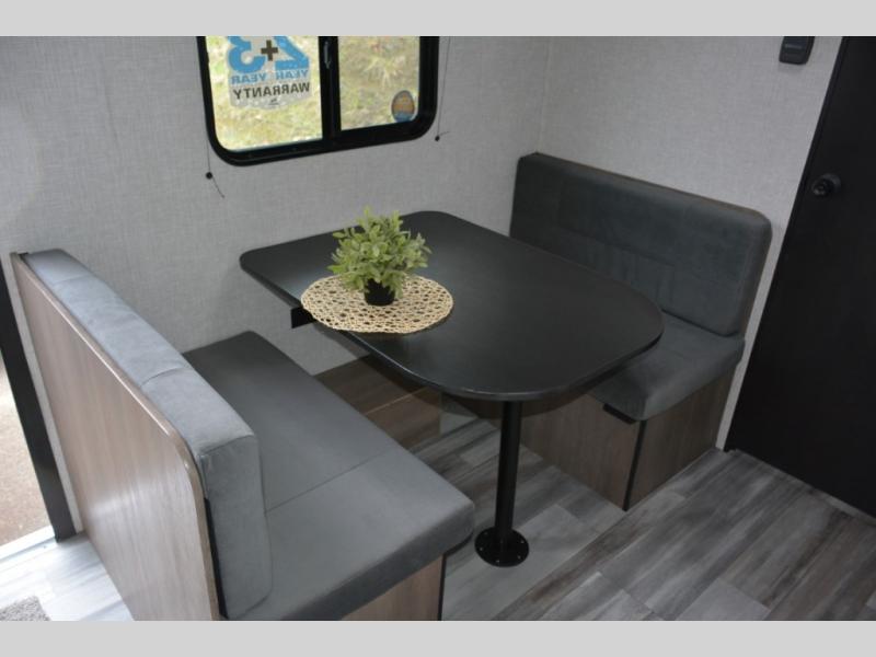 This travel trailer includes everything you need for fun trips at the lake. When you arrive at the campground, you can unload the exterior storage, then put out the 10' power awning. The booth dinette inside will provide a place to dine together, and the full rear bath with a 24" x 32" shower will make it easier than ever to clean up after a day of hiking. A front RV queen bed will provide a great night's rest, and the overhead shelf will be perfect for books or personal belongings. The optional STX Edition can be added on this model which features 16 in. off-road tires, triple entry steps, a power tongue jack, and more!