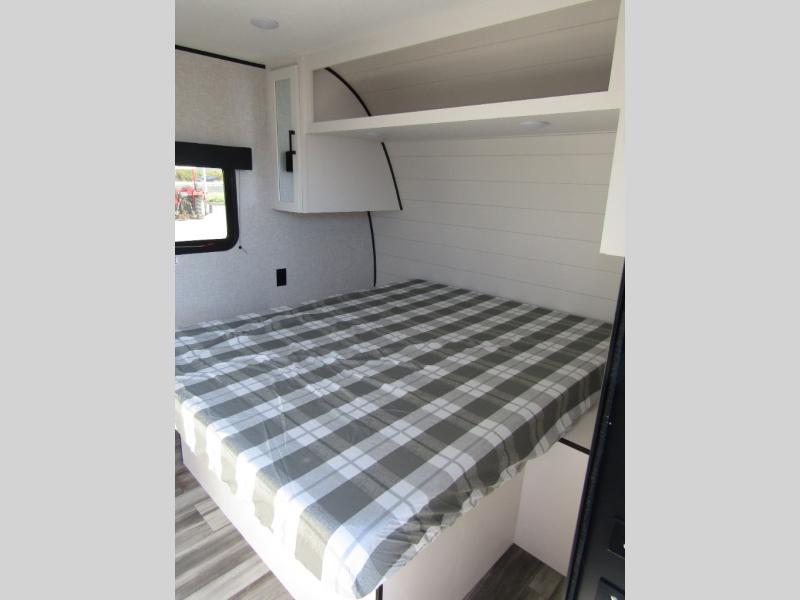 This travel trailer includes everything you need for fun trips at the lake. When you arrive at the campground, you can unload the exterior storage, then put out the 12' power awning with LED lights. There is also an LP Quick Connect if you want to hook up your own grill! The booth dinette inside will provide a place to dine together, and the full rear bath with a tub/shower will make bath time easier than ever for little ones. A front RV queen bed will provide a great night's rest, and the privacy curtain will be appreciated when you're getting dressed in the morning. The optional STX Edition can be added on this model which includes 16 in. off-road tires, triple entry steps, a power tongue jack, and more!