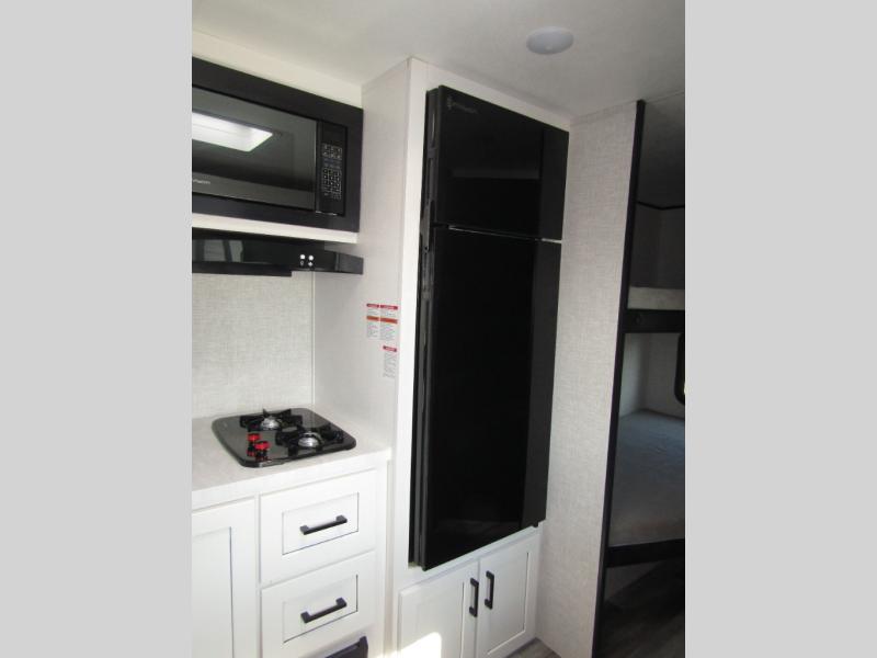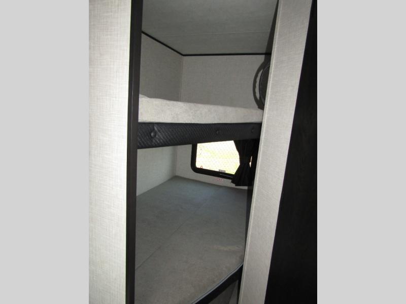 Any time spent in this travel trailer will be time well spent! You can easily sleep eight people each night thanks to the double-size bunks, front Murphy bed, and U-shaped dinette within the slide out. There is a full bath next to the bunks for easy nighttime use, and the linen closet will be perfect for clean towels. A cooktop, microwave oven, and 8 cu. ft. 12V refrigerator will let you cook and store food, and there is an overhead cabinet for spices or snacks! The optional STX Edition can be added on this model which includes 16 in. off-road tires, triple entry steps, a power tongue jack, and more!