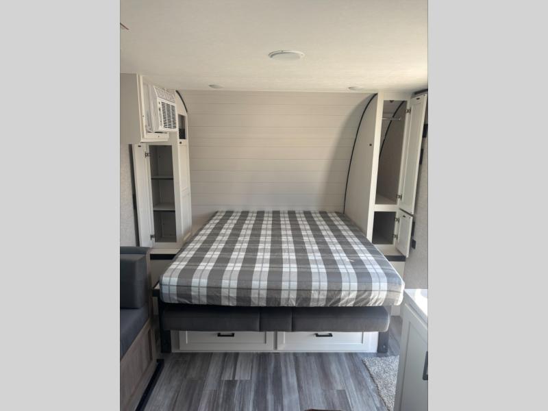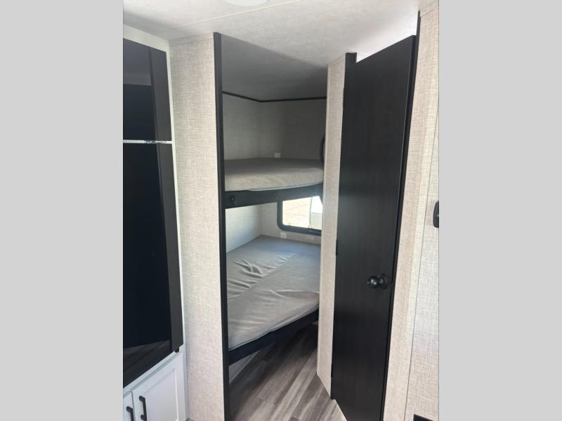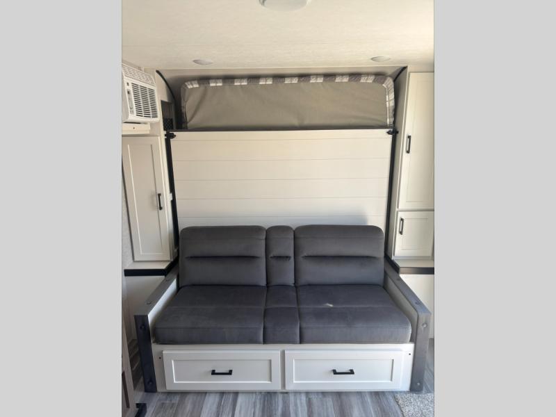 Any time spent in this travel trailer will be time well spent! You can easily sleep eight people each night thanks to the double-size bunks, front Murphy bed, and U-shaped dinette within the slide out. There is a full bath next to the bunks for easy nighttime use, and the linen closet will be perfect for clean towels. A cooktop, microwave oven, and 8 cu. ft. 12V refrigerator will let you cook and store food, and there is an overhead cabinet for spices or snacks! The optional STX Edition can be added on this model which includes 16 in. off-road tires, triple entry steps, a power tongue jack, and more!