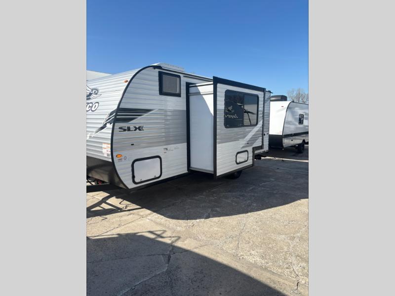 The Jayco Jay Flight SLX travel trailer is quite easy to own because it is lightweight for an easier towing experience. Built on a fully integrated A-frame with galvanized-steel, impact-resistant wheel wells, the Jay Flight SLX has quality at its very foundation. That quality continues on to the electric self-adjusting brakes, easy-lube hubs, Magnum Truss roof system, and LP quick connect. Some of what the mandatory Customer Value Package includes is backup camera prep, Keyed-Alike entry and baggage doors, marine grade exterior speakers, and an on-demand tankless water heater.