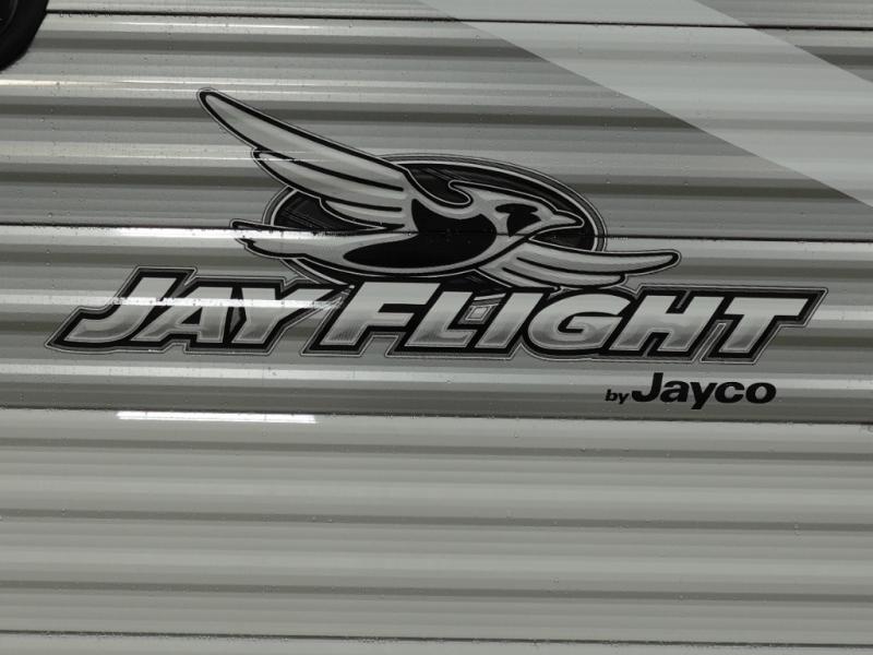 The Jayco Jay Flight SLX travel trailer is quite easy to own because it is lightweight for an easier towing experience. Built on a fully integrated A-frame with galvanized-steel, impact-resistant wheel wells, the Jay Flight SLX has quality at its very foundation. That quality continues on to the electric self-adjusting brakes, easy-lube hubs, Magnum Truss roof system, and LP quick connect. Some of what the mandatory Customer Value Package includes is backup camera prep, Keyed-Alike entry and baggage doors, marine grade exterior speakers, and an on-demand tankless water heater.