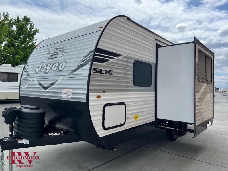 The Jayco Jay Flight SLX travel trailer is quite easy to own because it is lightweight for an easier towing experience. Built on a fully integrated A-frame with galvanized-steel, impact-resistant wheel wells, the Jay Flight SLX has quality at its very foundation. That quality continues on to the electric self-adjusting brakes, easy-lube hubs, Magnum Truss roof system, and LP quick connect. Some of what the mandatory Customer Value Package includes is backup camera prep, Keyed-Alike entry and baggage doors, marine grade exterior speakers, and an on-demand tankless water heater.