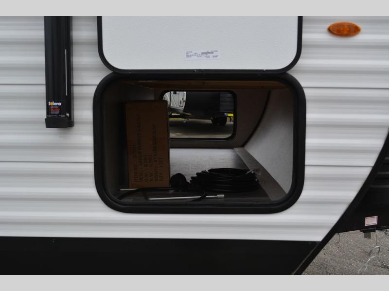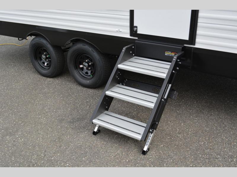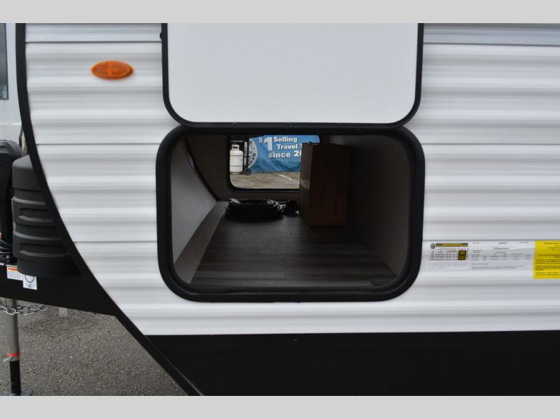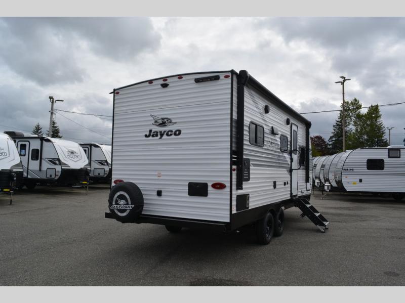 The Jayco Jay Flight SLX travel trailer is quite easy to own because it is lightweight for an easier towing experience. Built on a fully integrated A-frame with galvanized-steel, impact-resistant wheel wells, the Jay Flight SLX has quality at its very foundation. That quality continues on to the electric self-adjusting brakes, easy-lube hubs, Magnum Truss roof system, and LP quick connect. Some of what the mandatory Customer Value Package includes is backup camera prep, Keyed-Alike entry and baggage doors, marine grade exterior speakers, and an on-demand tankless water heater.