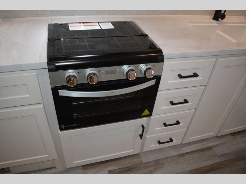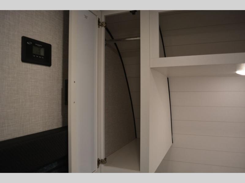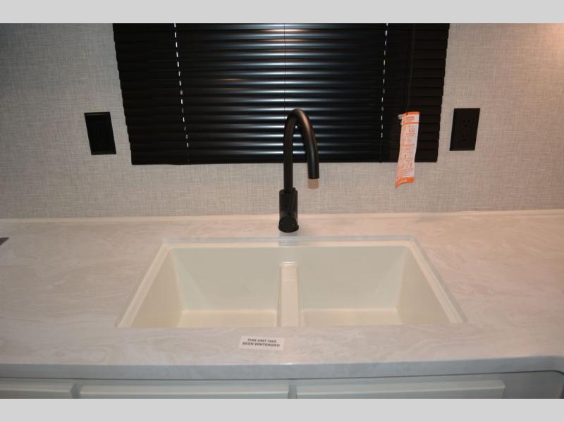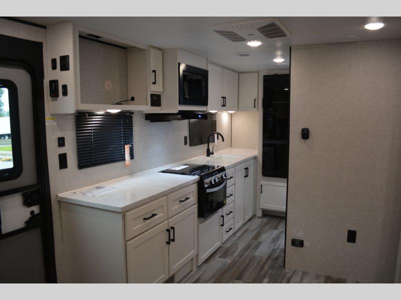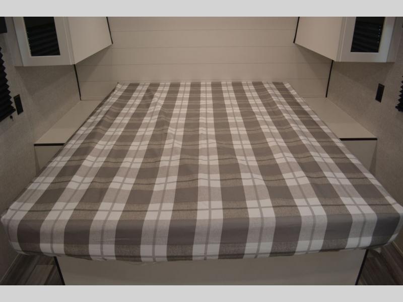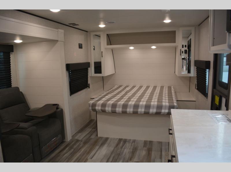 This couple's trailer will be perfect for weekend trips to the lake or extended stays at the campground. You can sleep on the front queen bed each night instead of on an air mattress, and the dual bedroom wardrobes will help keep your space organized. The theater seat with tables is within a slide for more floor space, and the fully-equipped kitchen will allow you to make meals each day. You'll also appreciate the rear corner full bath to stay clean throughout each trip!