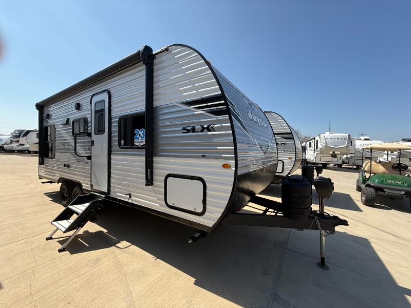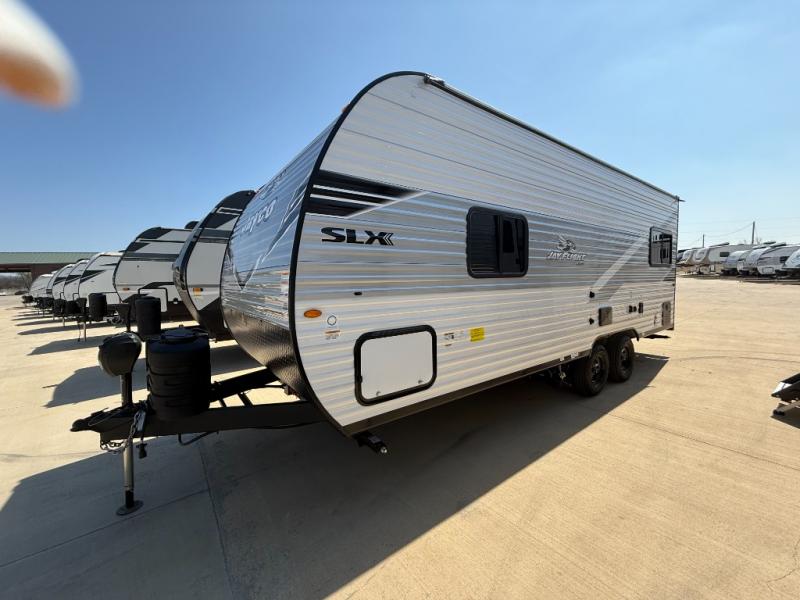 The Jayco Jay Flight SLX travel trailer is quite easy to own because it is lightweight for an easier towing experience. Built on a fully integrated A-frame with galvanized-steel, impact-resistant wheel wells, the Jay Flight SLX has quality at its very foundation. That quality continues on to the electric self-adjusting brakes, easy-lube hubs, Magnum Truss roof system, and LP quick connect. Some of what the mandatory Customer Value Package includes is backup camera prep, Keyed-Alike entry and baggage doors, marine grade exterior speakers, and an on-demand tankless water heater.