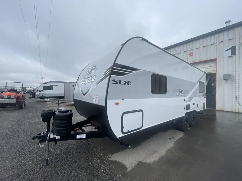 The Jayco Jay Flight SLX travel trailer is quite easy to own because it is lightweight for an easier towing experience. Built on a fully integrated A-frame with galvanized-steel, impact-resistant wheel wells, the Jay Flight SLX has quality at its very foundation. That quality continues on to the electric self-adjusting brakes, easy-lube hubs, Magnum Truss roof system, and LP quick connect. Some of what the mandatory Customer Value Package includes is backup camera prep, Keyed-Alike entry and baggage doors, marine grade exterior speakers, and an on-demand tankless water heater.