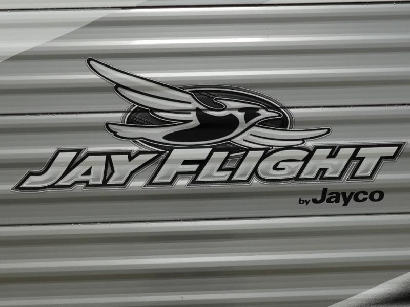 The Jayco Jay Flight SLX travel trailer is quite easy to own because it is lightweight for an easier towing experience. Built on a fully integrated A-frame with galvanized-steel, impact-resistant wheel wells, the Jay Flight SLX has quality at its very foundation. That quality continues on to the electric self-adjusting brakes, easy-lube hubs, Magnum Truss roof system, and LP quick connect. Some of what the mandatory Customer Value Package includes is backup camera prep, Keyed-Alike entry and baggage doors, marine grade exterior speakers, and an on-demand tankless water heater.