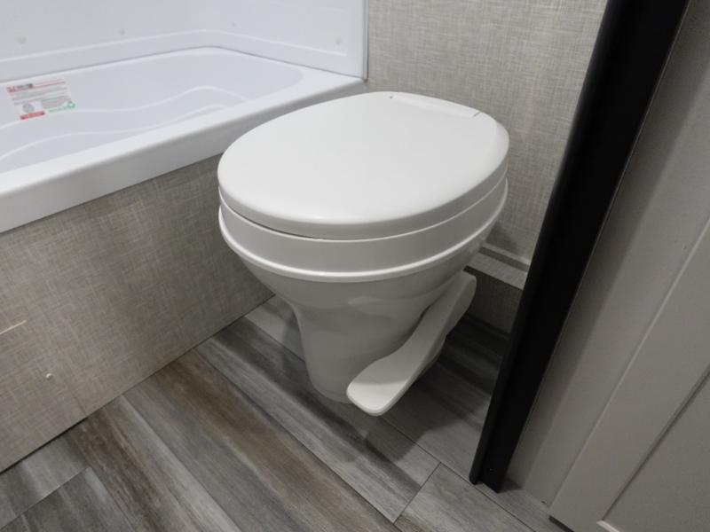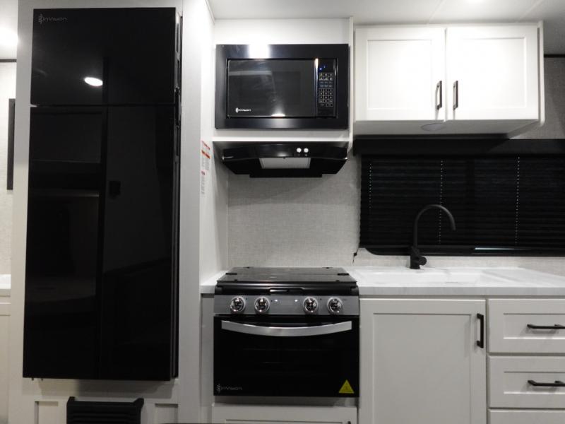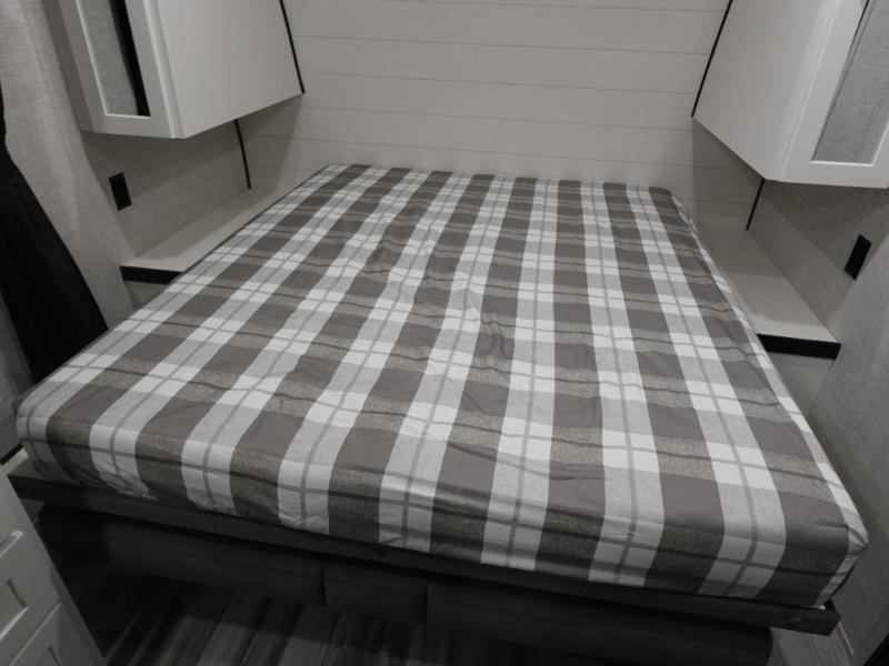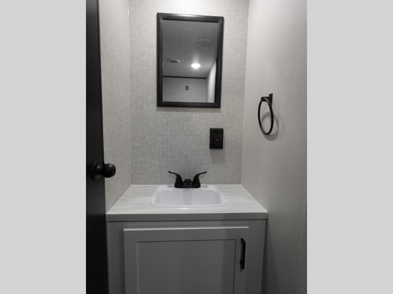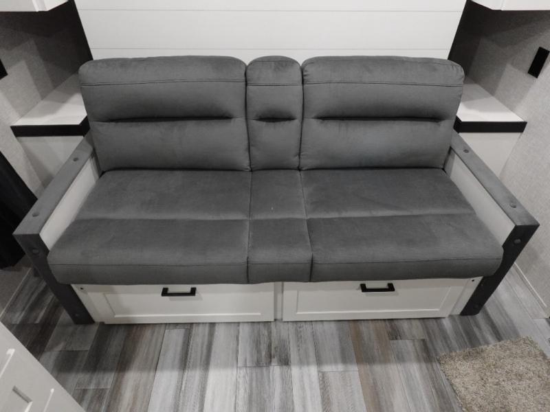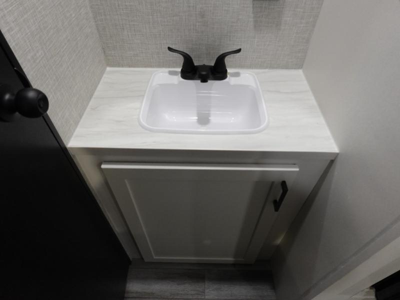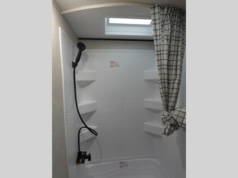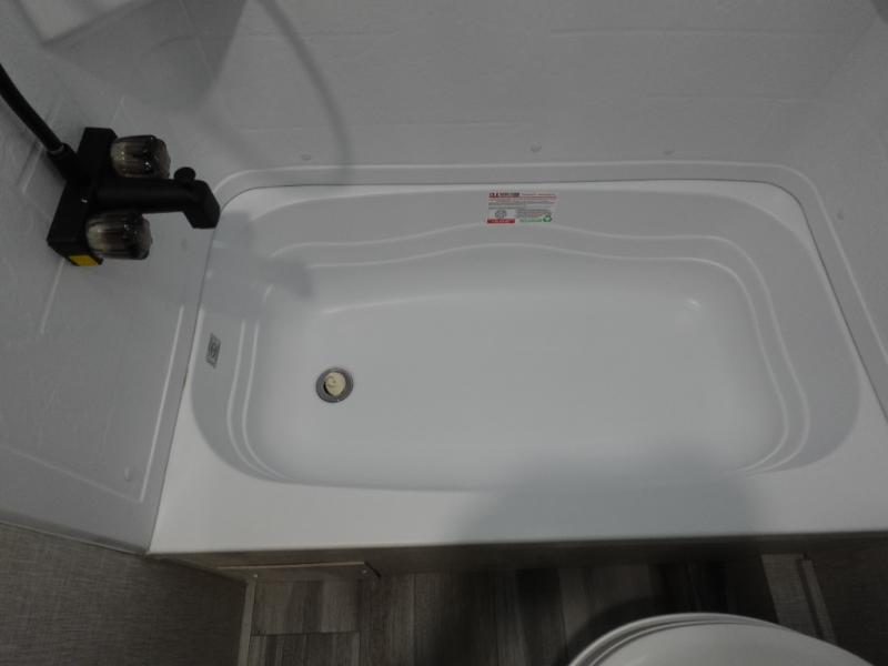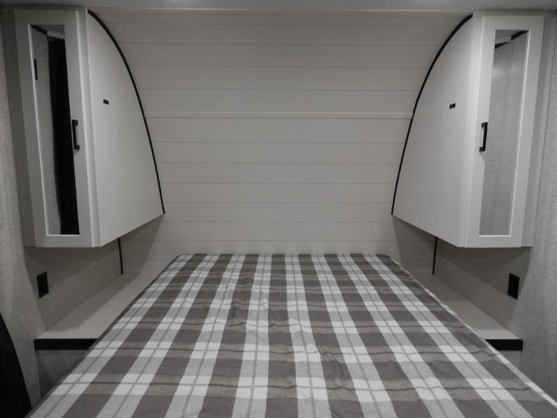 You'll love camping at the lake in this versatile travel trailer. Since there is a Murphy bed up front, you can fold it away in the morning to enjoy the Jack-knife sofa, plus there is a booth dinette for even more seating space. The microwave oven and cooktop in the kitchen allow you to make meals each day, and the 8 cu. ft. 12V refrigerator will keep perishables fresh. Your guests or the little ones are sure to love the double-size bunks, and the rear corner bath is right next to the bunks for easy nighttime use!