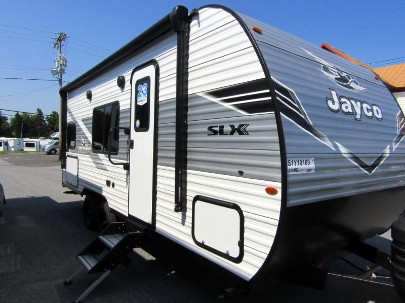 The Jayco Jay Flight SLX travel trailer is quite easy to own because it is lightweight for an easier towing experience. Built on a fully integrated A-frame with galvanized-steel, impact-resistant wheel wells, the Jay Flight SLX has quality at its very foundation. That quality continues on to the electric self-adjusting brakes, easy-lube hubs, Magnum Truss roof system, and LP quick connect. Some of what the mandatory Customer Value Package includes is backup camera prep, Keyed-Alike entry and baggage doors, marine grade exterior speakers, and an on-demand tankless water heater.
