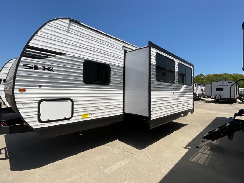 The Jayco Jay Flight SLX travel trailer is quite easy to own because it is lightweight for an easier towing experience. Built on a fully integrated A-frame with galvanized-steel, impact-resistant wheel wells, the Jay Flight SLX has quality at its very foundation. That quality continues on to the electric self-adjusting brakes, easy-lube hubs, Magnum Truss roof system, and LP quick connect. Some of what the mandatory Customer Value Package includes is backup camera prep, Keyed-Alike entry and baggage doors, marine grade exterior speakers, and an on-demand tankless water heater.