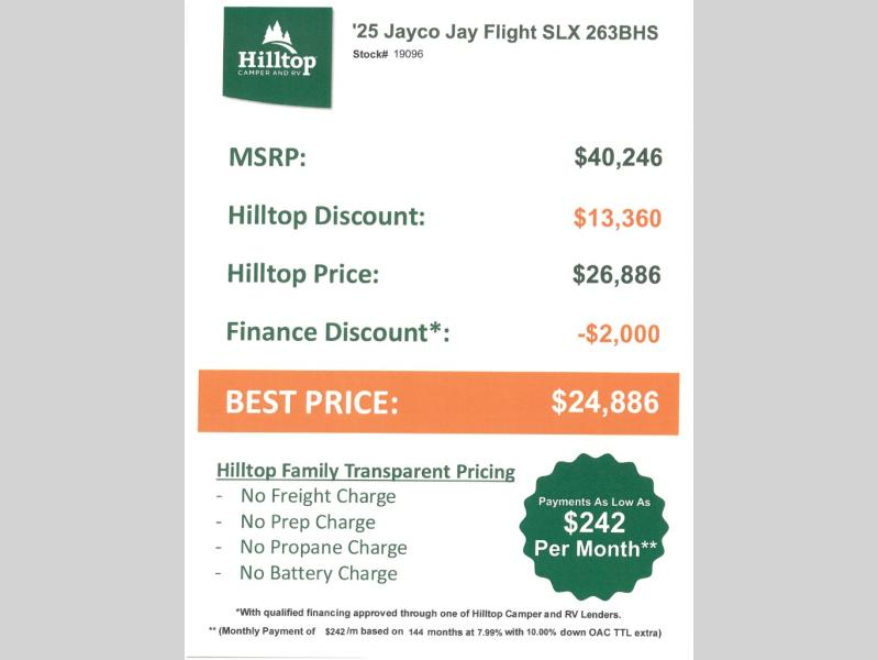 New 2025 Jayco Jay Flight SLX 263BHS Travel Trailer