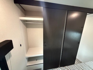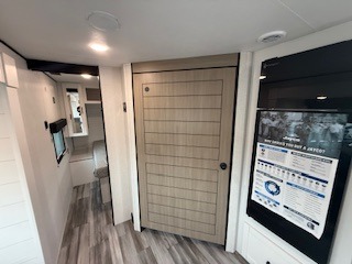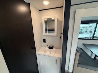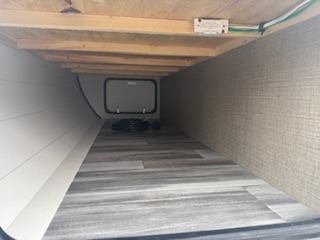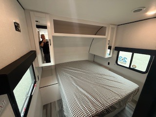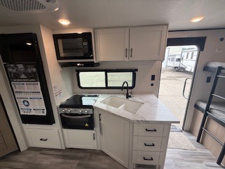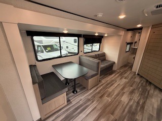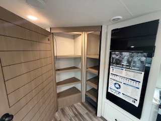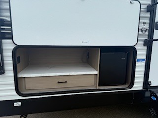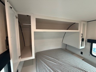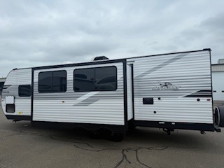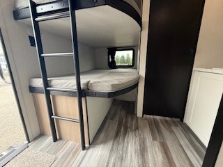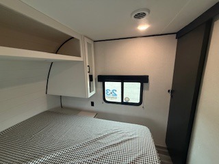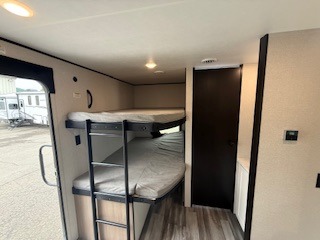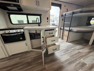 If space is what you're looking for in your next trailer, space is what you'll get this this Jay Flight SLX! The large slide houses the jack-knife sofa and booth dinette, and the added space here will provide everyone room to move about. The chef of your group will love cooking inside, or they can head outside to cook on the outdoor kitchen. Double-size bunks are sure to be a big hit with the little ones, and you'll love having your own space up front in the private bedroom. This unit includes ample storage space, including a hidden pantry with shelves, a bedroom closet plus dual bedside wardrobes, plus exterior storage for hiking or fishing gear!