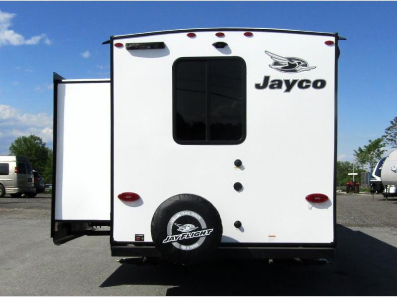 The Jayco Jay Flight SLX travel trailer is quite easy to own because it is lightweight for an easier towing experience. Built on a fully integrated A-frame with galvanized-steel, impact-resistant wheel wells, the Jay Flight SLX has quality at its very foundation. That quality continues on to the electric self-adjusting brakes, easy-lube hubs, Magnum Truss roof system, and LP quick connect. Some of what the mandatory Customer Value Package includes is backup camera prep, Keyed-Alike entry and baggage doors, marine grade exterior speakers, and an on-demand tankless water heater.