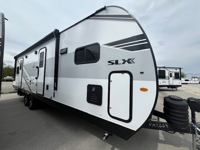 The Jayco Jay Flight SLX travel trailer is quite easy to own because it is lightweight for an easier towing experience. Built on a fully integrated A-frame with galvanized-steel, impact-resistant wheel wells, the Jay Flight SLX has quality at its very foundation. That quality continues on to the electric self-adjusting brakes, easy-lube hubs, Magnum Truss roof system, and LP quick connect. Some of what the mandatory Customer Value Package includes is backup camera prep, Keyed-Alike entry and baggage doors, marine grade exterior speakers, and an on-demand tankless water heater.
