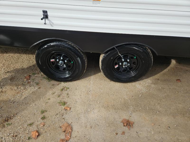 The Jayco Jay Flight SLX travel trailer is quite easy to own because it is lightweight for an easier towing experience. Built on a fully integrated A-frame with galvanized-steel, impact-resistant wheel wells, the Jay Flight SLX has quality at its very foundation. That quality continues on to the electric self-adjusting brakes, easy-lube hubs, Magnum Truss roof system, and LP quick connect. Some of what the mandatory Customer Value Package includes is backup camera prep, Keyed-Alike entry and baggage doors, marine grade exterior speakers, and an on-demand tankless water heater.